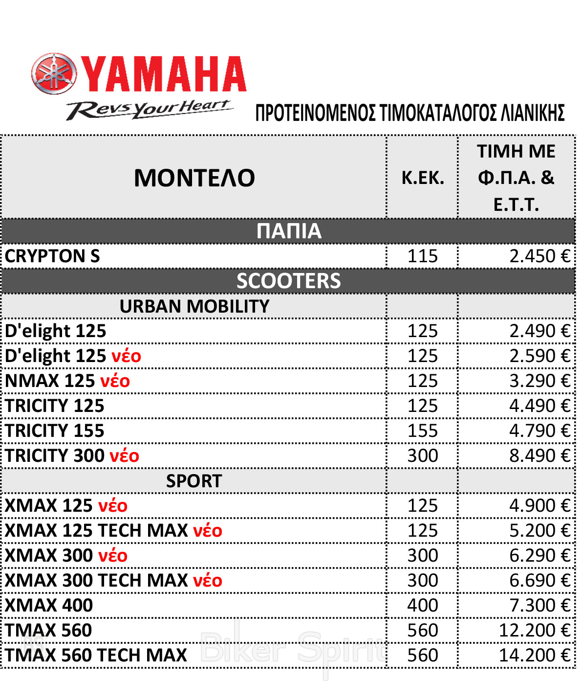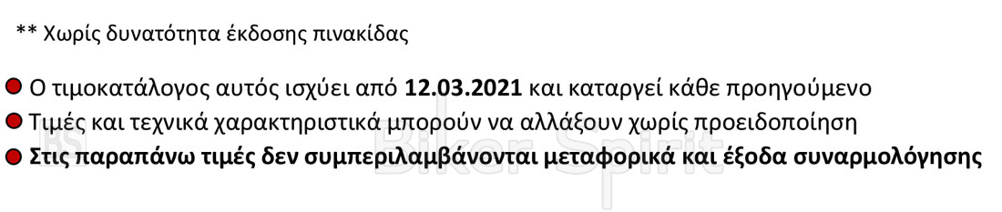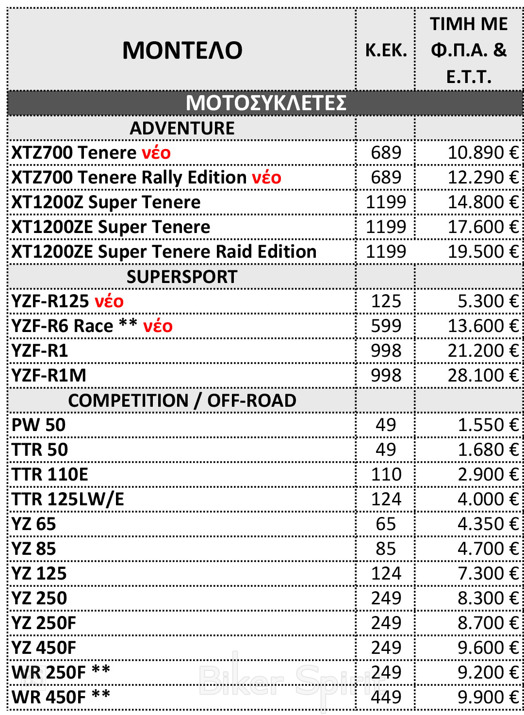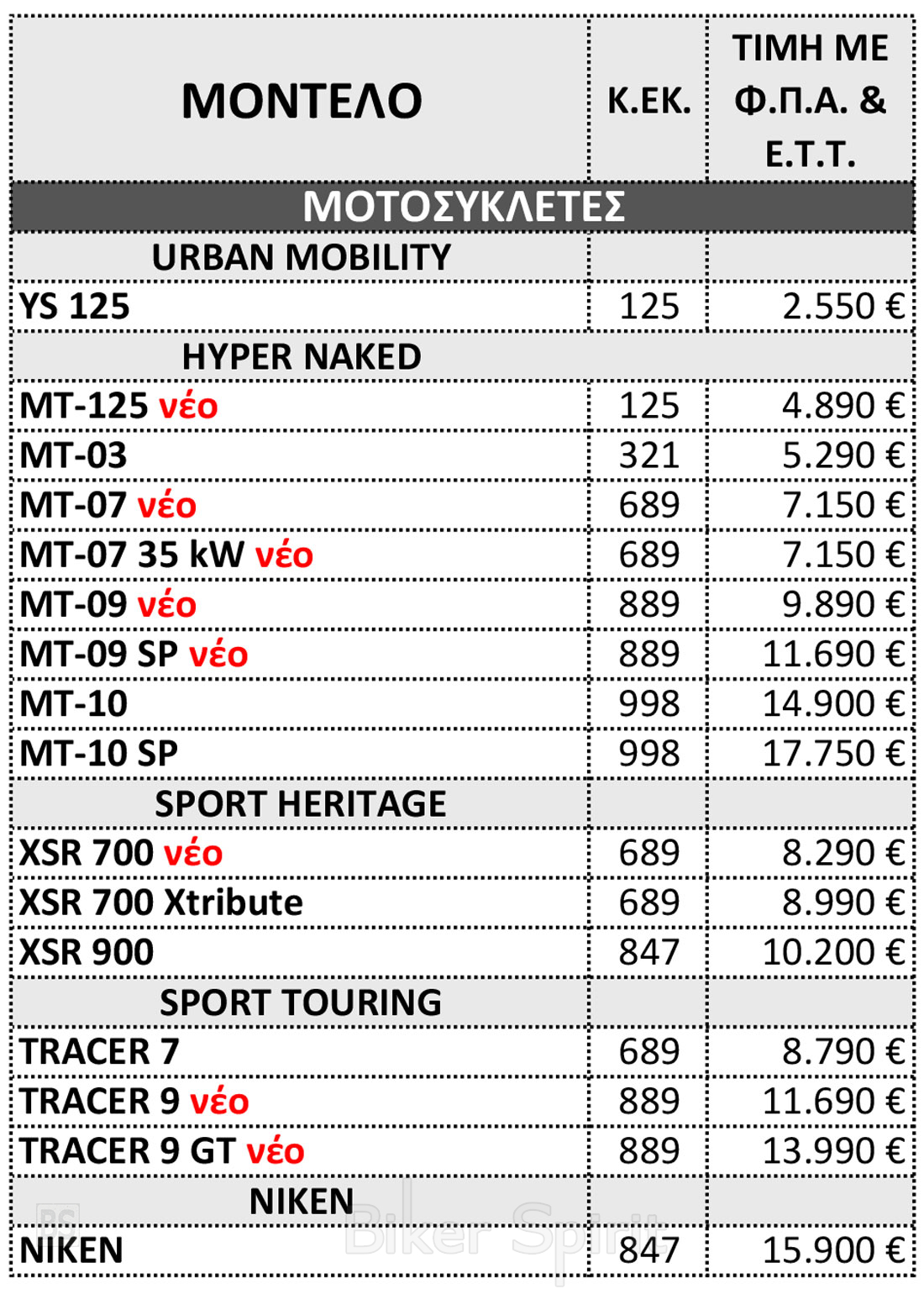 YamahaΤΙΜΟΚΑΤΑΛΟΓΟΙ 2021 Νέος Τιμοκατάλογος μοτοσυκλετών YAMAHA 2021 με όλα τα νέα μοντέλα 12 March 2021 BikerSpirit Τιμοκατάλογος, Τιμοκατάλογος ΥΑΜΑΗΑ, ΥΑΜΑΗΑ 0 min read Η Ελληνική αντιπρόσωπος της Yamaha, Μοτοδυναμική Α.Ε. ανακοίνωσε τον νέο της τιμοκατάλογο με ισχύ από 12/3/2021 Στον νέο τιμοκατάλογο οι αλλαγές αφορούν μόνο τιμές στα παρακάτω νέα μοντέλα: D’elight 125 MT-09 MT-09 SP TRACER 9 TRACER 9 GT Randomizer Related Posts Νέος Τιμοκατάλογος μοτοσυκλετών YAMAHA 2021 με όλα τα νέα μοντέλα Νέος Τιμοκατάλογος μοτοσυκλετών YAMAHA 2021 Νέα εξάτμιση Akrapovič για τη Yamaha Tracer 9 – Τώρα διαθέσιμη σε νέα προνομιακή τιμή Ténéré 700 World Raid 2026: Περισσότερη τεχνολογία, ίδια αυθεντική adventure ψυχή H YAMAHA στην EICMA 2025 – Δείτε ένα VIDEO και Φωτογραφίες για το τι παρουσίασε η Ιαπωνική φίρμα στο Μιλάνο Yamaha Ténéré 700 Explore – Νέα μειωμένη τιμή για να κατακτήσετε τον επόμενο ορίζοντα! Share this: Share on Facebook (Opens in new window) Facebook Share on X (Opens in new window) X Share on LinkedIn (Opens in new window) LinkedIn Print (Opens in new window) Print More Share on Reddit (Opens in new window) Reddit Share on Tumblr (Opens in new window) Tumblr Share on Pinterest (Opens in new window) Pinterest Related