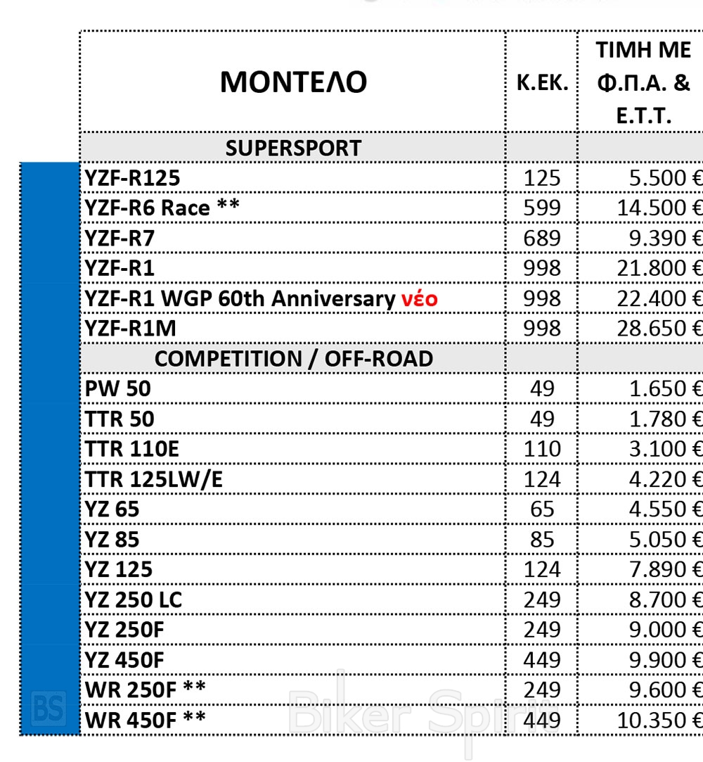 YamahaΤΙΜΟΚΑΤΑΛΟΓΟΙ 2022 Νέος Τιμοκατάλογος μοτοσυκλετών YAMAHA 2022 με όλα τα νέα μοντέλα 8 April 2022 BikerSpirit Yamaha, ΜΟΤΟΔΥΝΑΜΙΚΗ, Τιμοκατάλογος 0 min read Η Ελληνική αντιπρόσωπος της Yamaha, Μοτοδυναμική Α.Ε. ανακοινώνει τον νέο της τιμοκατάλογο 2022 με όλα τα νέα μοντέλα με ισχύ από 08/04/2022. Randomizer Related Posts Νέος Τιμοκατάλογος μοτοσυκλετών YAMAHA 2022 Νέος Τιμοκατάλογος YAMAHA 2022 με όλα τα νέα της μοντέλα. Νέος Τιμοκατάλογος μοτοσυκλετών YAMAHA 2022 με όλα τα νέα μοντέλα Νέα εξάτμιση Akrapovič για τη Yamaha Tracer 9 – Τώρα διαθέσιμη σε νέα προνομιακή τιμή Ténéré 700 World Raid 2026: Περισσότερη τεχνολογία, ίδια αυθεντική adventure ψυχή H YAMAHA στην EICMA 2025 – Δείτε ένα VIDEO και Φωτογραφίες για το τι παρουσίασε η Ιαπωνική φίρμα στο Μιλάνο Share this: Share on Facebook (Opens in new window) Facebook Share on X (Opens in new window) X Share on LinkedIn (Opens in new window) LinkedIn Print (Opens in new window) Print More Share on Reddit (Opens in new window) Reddit Share on Tumblr (Opens in new window) Tumblr Share on Pinterest (Opens in new window) Pinterest Related