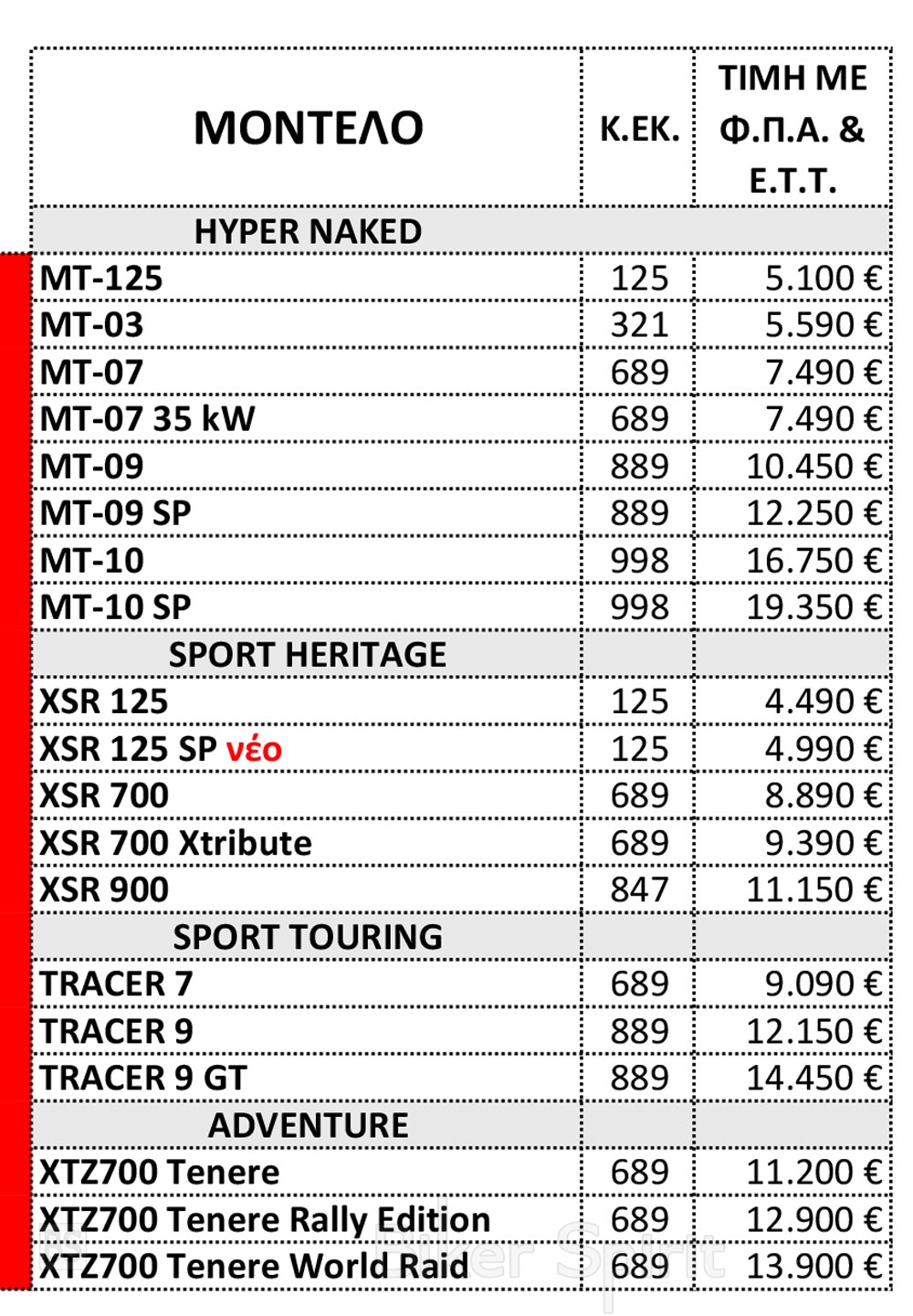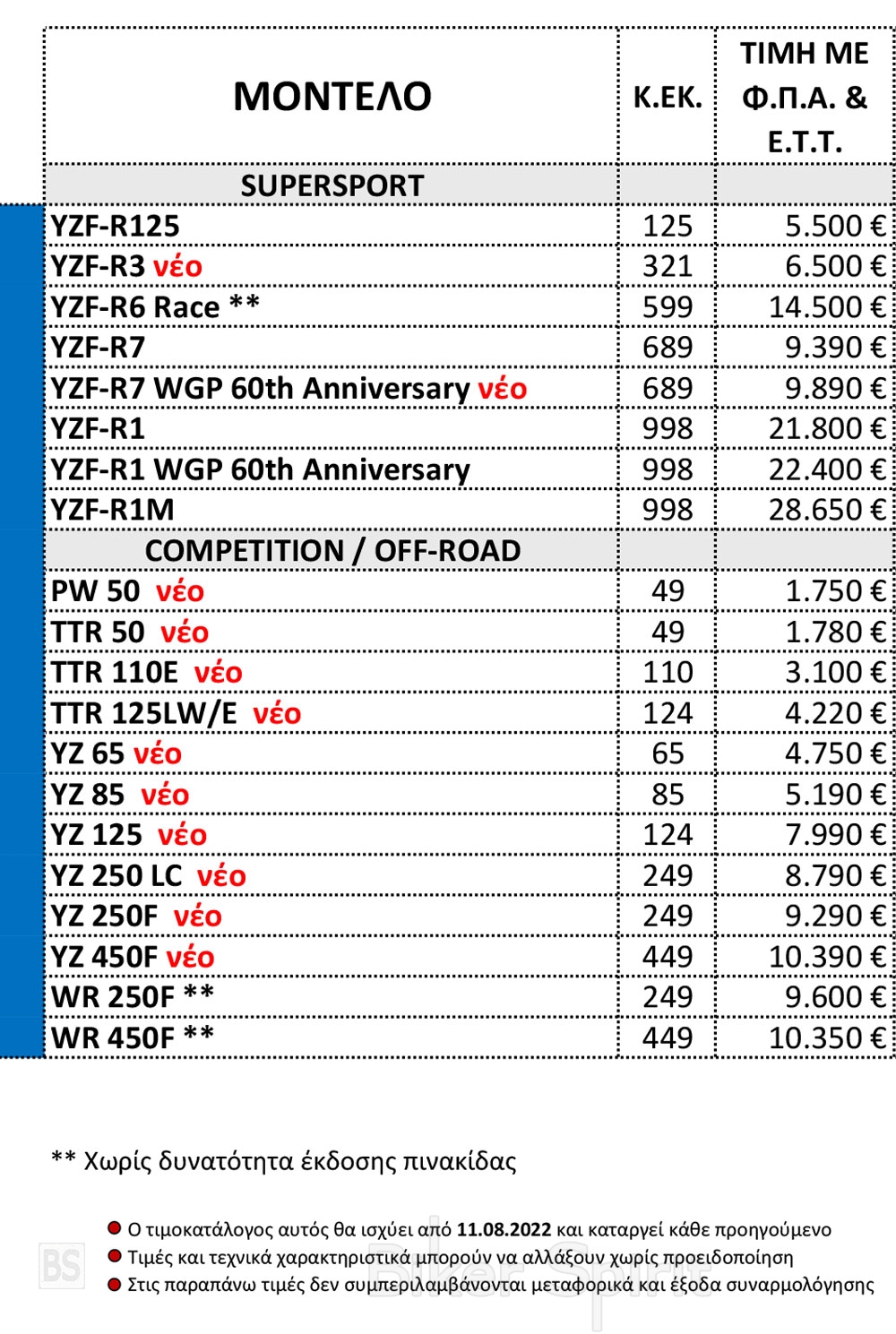 YamahaΤΙΜΟΚΑΤΑΛΟΓΟΙ 2022 Νέος Τιμοκατάλογος μοτοσυκλετών YAMAHA 2022 19 August 2022 BikerSpirit Yamaha, ΜΟΤΟΔΥΝΑΜΙΚΗ, Τιμοκατάλογος 0 min read Νέος Τιμοκατάλογος μοτοσυκλετών YAMAHA 2022 με τα νέα μοντέλα της Off-Road Competition κατηγορίας. Η Ελληνική αντιπρόσωπος της Yamaha, Μοτοδυναμική Α.Ε. ανακοινώνει τον νέο της τιμοκατάλογο με ισχύ από 11/08/2022 Randomizer Related Posts Νέος Τιμοκατάλογος YAMAHA 2022 με όλα τα νέα της μοντέλα. Νέος Τιμοκατάλογος μοτοσυκλετών YAMAHA 2022 με όλα τα νέα μοντέλα Νέος Τιμοκατάλογος μοτοσυκλετών YAMAHA 2022 με όλα τα νέα μοντέλα Νέα εξάτμιση Akrapovič για τη Yamaha Tracer 9 – Τώρα διαθέσιμη σε νέα προνομιακή τιμή Ténéré 700 World Raid 2026: Περισσότερη τεχνολογία, ίδια αυθεντική adventure ψυχή H YAMAHA στην EICMA 2025 – Δείτε ένα VIDEO και Φωτογραφίες για το τι παρουσίασε η Ιαπωνική φίρμα στο Μιλάνο Share this: Share on Facebook (Opens in new window) Facebook Share on X (Opens in new window) X Share on LinkedIn (Opens in new window) LinkedIn Print (Opens in new window) Print More Share on Reddit (Opens in new window) Reddit Share on Tumblr (Opens in new window) Tumblr Share on Pinterest (Opens in new window) Pinterest Related