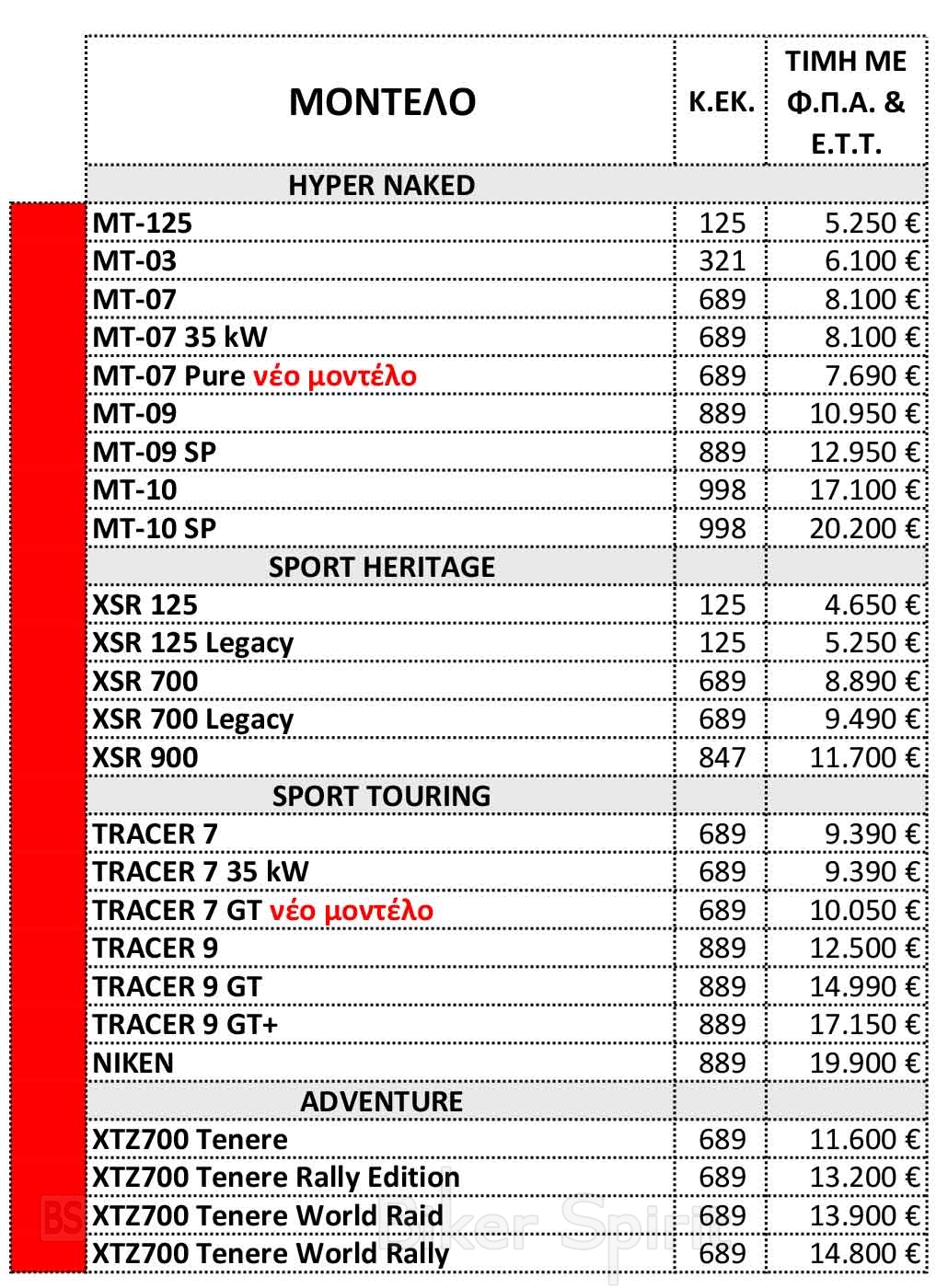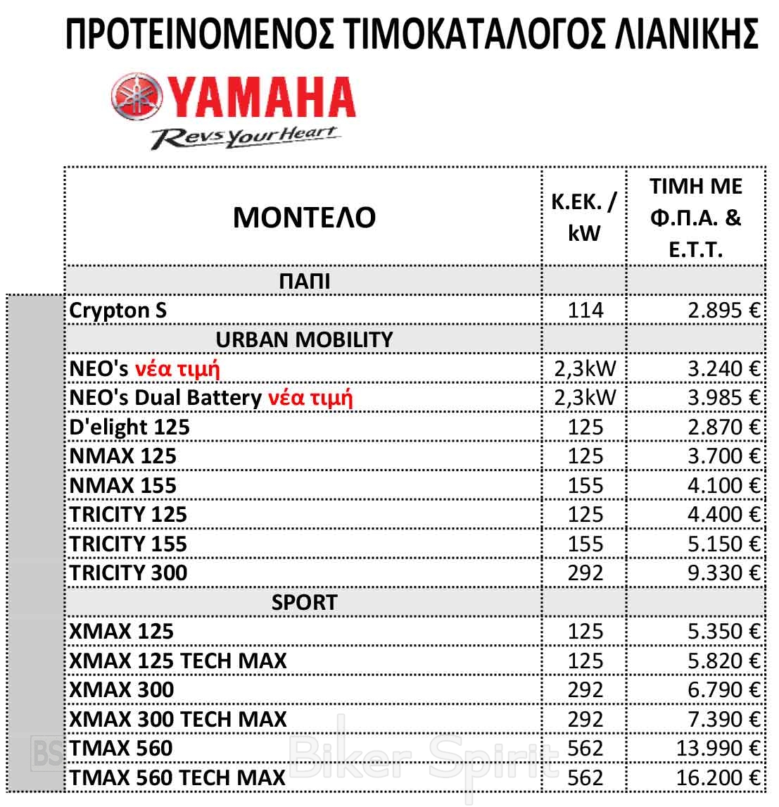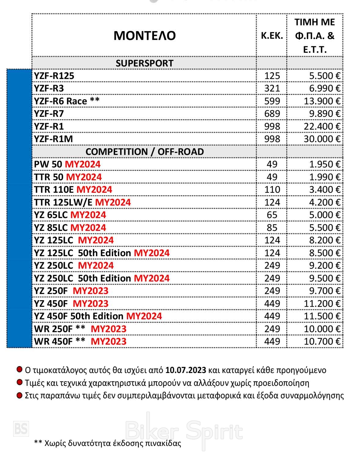 Η Ελληνική αντιπροσωπία της Yamaha, Μοτοδυναμική Α.Ε. ανακοίνωσε τον νέο της τιμοκατάλογο με ισχύ από 10/7/2023