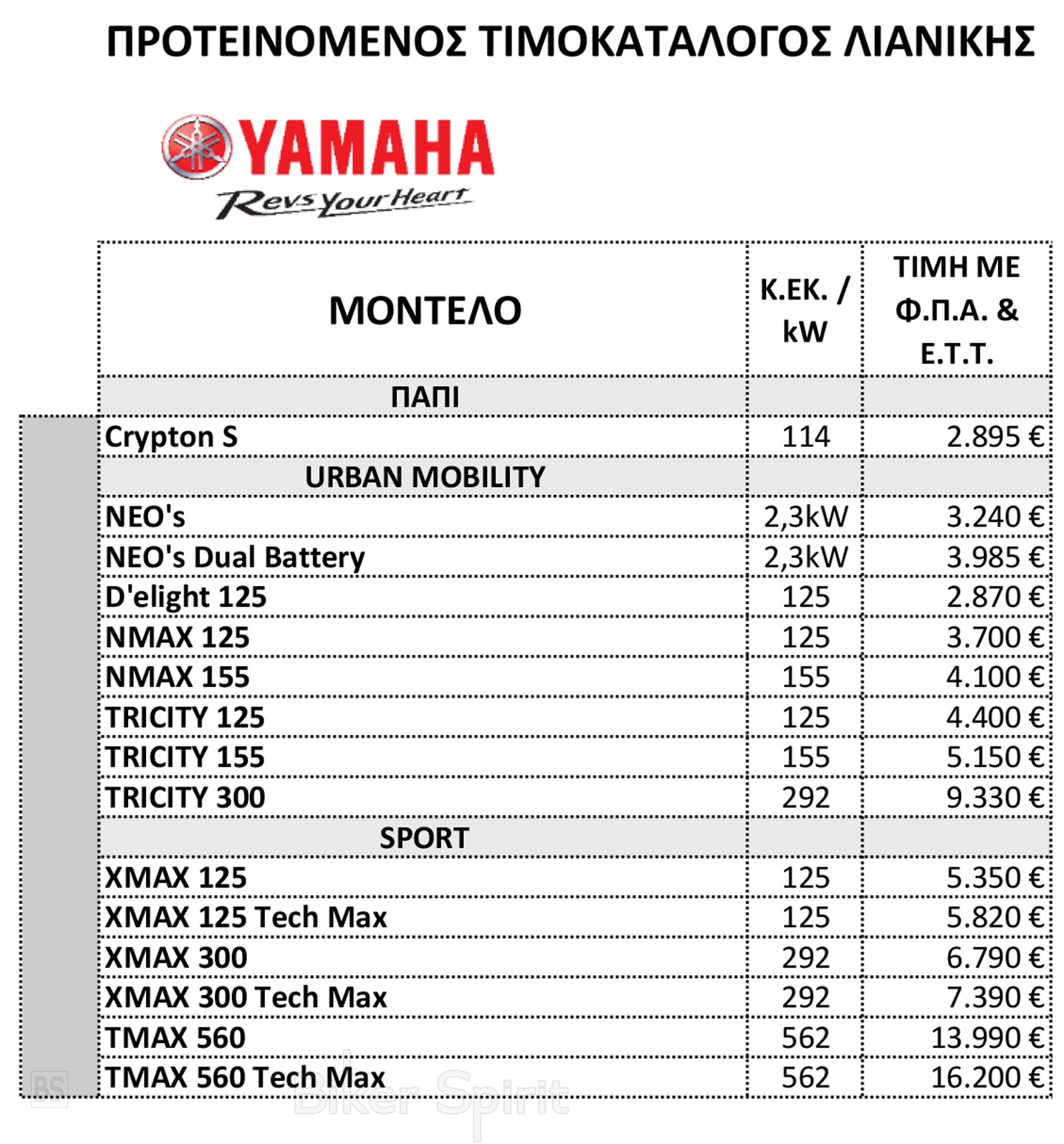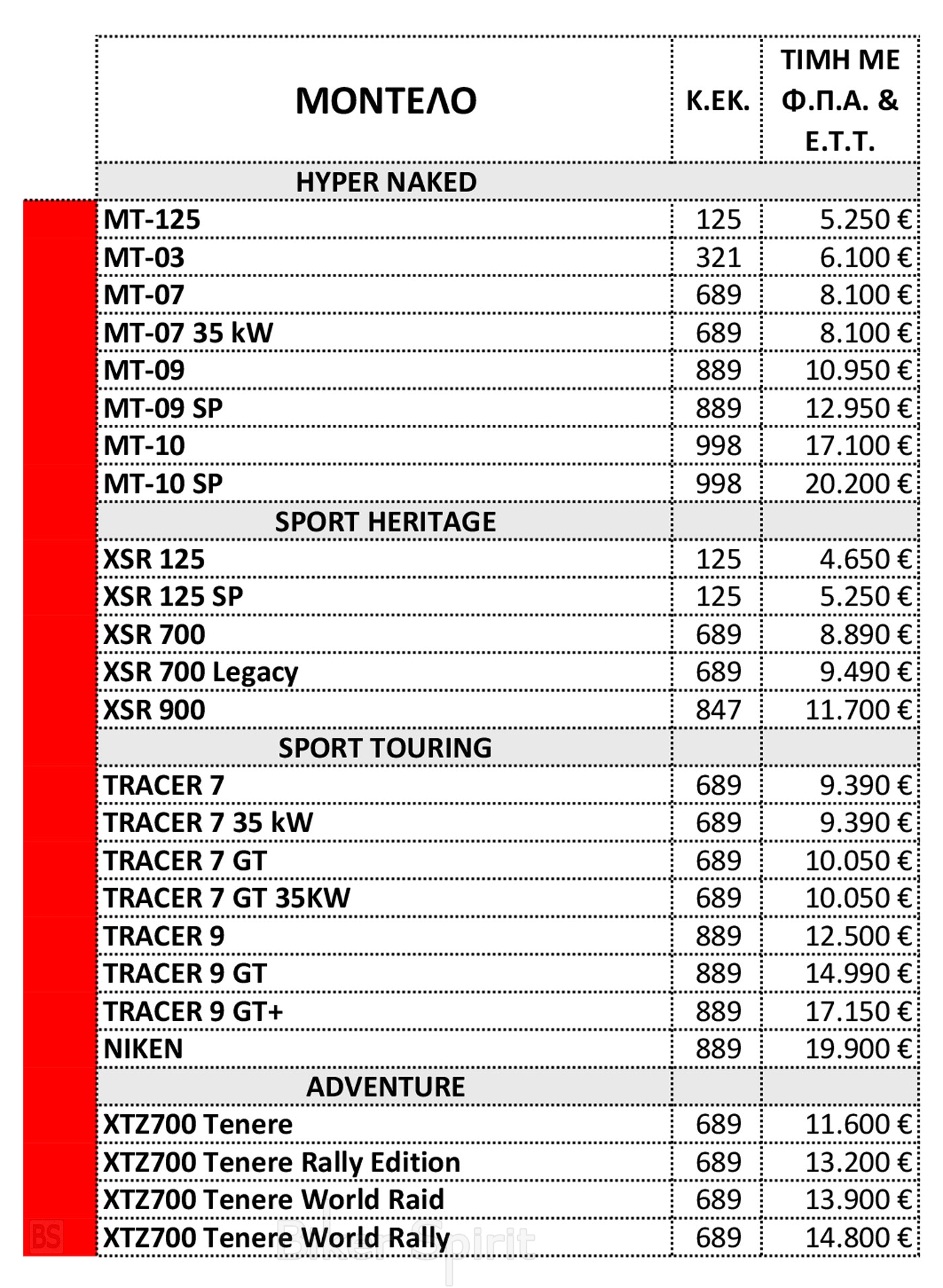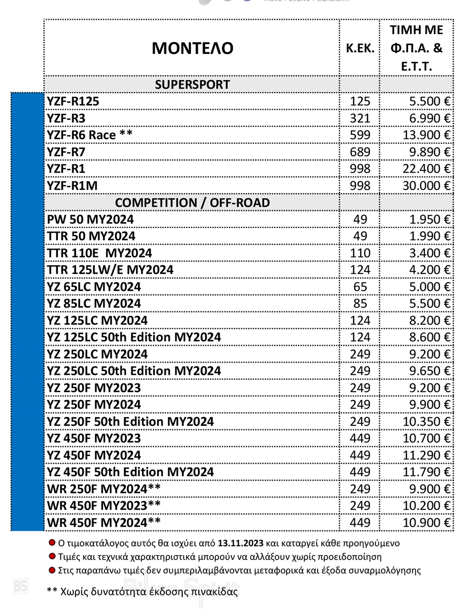 ΤΙΜΟΚΑΤΑΛΟΓΟΙ 2023 Νέος Τιμοκατάλογος μοτοσυκλετών YAMAHA 2023 13 November 2023 BikerSpirit Yamaha, ΜΟΤΟΔΥΝΑΜΙΚΗ, Τιμοκατάλογος 0 min read Η Ελληνική αντιπροσωπία της Yamaha, Μοτοδυναμική Α.Ε. ανακοίνωσε τον νέο της τιμοκατάλογο με ισχύ από 13/11/2023 Randomizer Related Posts Τιμοκατάλογος ZEEHO που περιέχει τις τιμές με επιδότηση ΝΕΟΣ ΤΙΜΟΚΑΤΑΛΟΓΟΣ της Honda Motorcycles 2023 Νέος τιμοκατάλογος μοτοσυκλετών Triumph 2023 Νέος Ανανεωμένος Τιμοκατάλογος μοτοσυκλετών BETA 2023 Νέος ανανεωμένος τιμοκατάλογος Suzuki Motorcycles με όλα τα νέα μοντέλα Νέος Ανανεωμένος Τιμοκατάλογος μοτοσυκλετών BETA για το 2023 Share this: Share on Facebook (Opens in new window) Facebook Share on X (Opens in new window) X Share on LinkedIn (Opens in new window) LinkedIn Print (Opens in new window) Print More Share on Reddit (Opens in new window) Reddit Share on Tumblr (Opens in new window) Tumblr Share on Pinterest (Opens in new window) Pinterest Related
