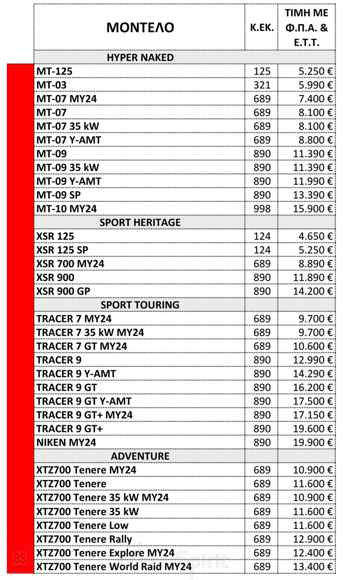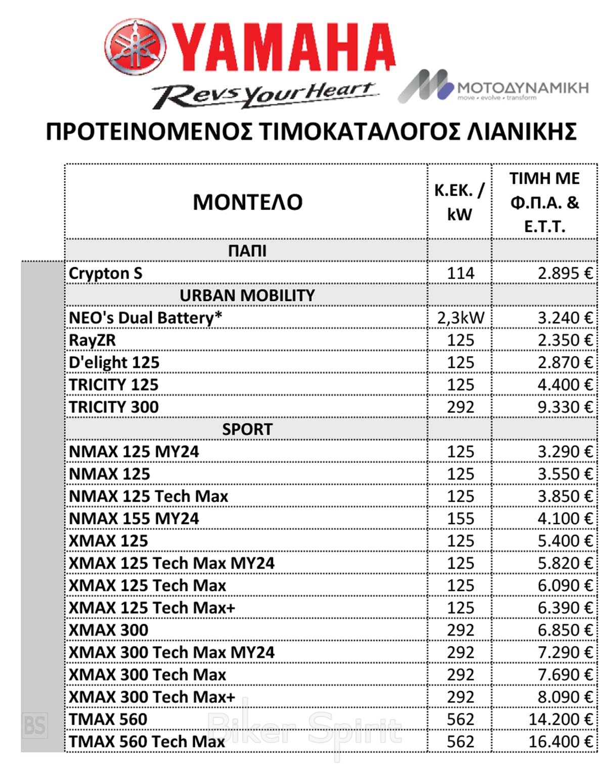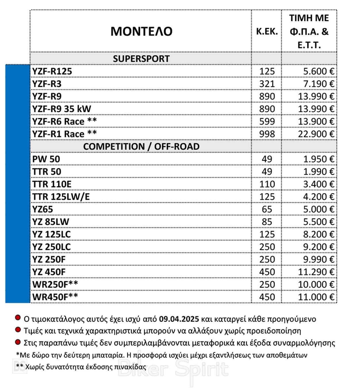 Η Ελληνική αντιπροσωπία της Yamaha, Μοτοδυναμική Α.Ε. ανακοίνωσε τον νέο της τιμοκατάλογο με ισχύ από 9/04/2025