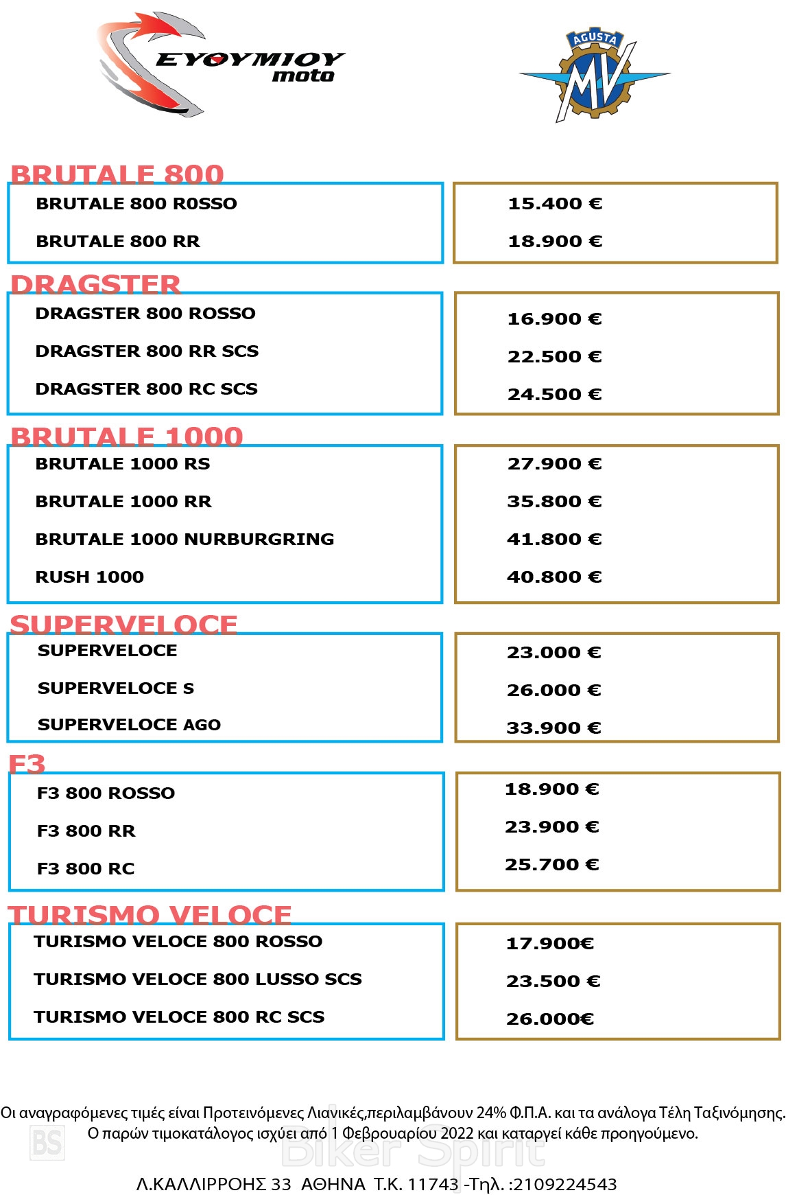MV AgustaΤΙΜΟΚΑΤΑΛΟΓΟΙ 2022 Νέος Τιμοκατάλογος MV AGUSTA 2022 8 February 2022 BikerSpirit MV Agusta, Τιμοκατάλογος, τιμοκατάλογος 2022 0 min read Η MV AGUSTA έδωσε τον νέο της τιμοκατάλογο που ισχύει από τις 1 Φεβρουαρίου 2022 Randomizer Related Posts MV Agusta: Πλήρες ηλεκτρονικό πακέτο στάνταρ σε ΟΛΗ τη γκάμα MV Agusta Rush Titanio: Το απόλυτο hyper-naked αποκαλύφθηκε στο The I.C.E. MV Agusta 5-Cylinder Engine Concept – Η επανάσταση των πέντε κυλίνδρων ξεκινά Η MV Agusta ανακοίνησε και επίσημα την τιμή της Brutale Serie Oro 2026 – Η Ελλάδα δεν βρίσκεται ακόμη στη λίστα MV Agusta Brutale Serie Oro 2026 – Το απόλυτο ιταλικό naked τέρας και με κορυφαία τεχνολογία MV Agusta Superveloce 1000 AGO – 83 κομμάτια υπογεγραμμένα από τον θρύλο Giacomo Agostini Share this: Share on Facebook (Opens in new window) Facebook Share on X (Opens in new window) X Share on LinkedIn (Opens in new window) LinkedIn Print (Opens in new window) Print More Share on Reddit (Opens in new window) Reddit Share on Tumblr (Opens in new window) Tumblr Share on Pinterest (Opens in new window) Pinterest Related
