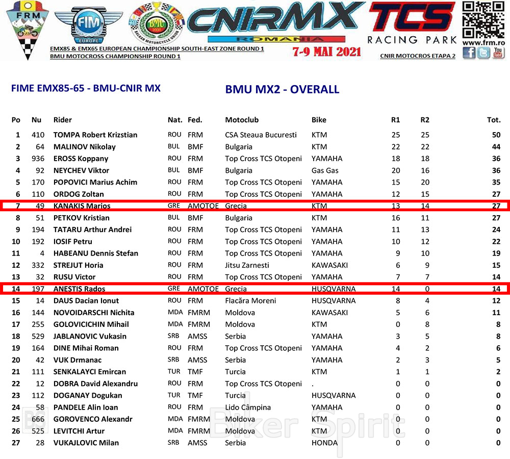 Αναλυτικά αποτελέσματα Ρουμανικό Πρωτάθλημα MX >>