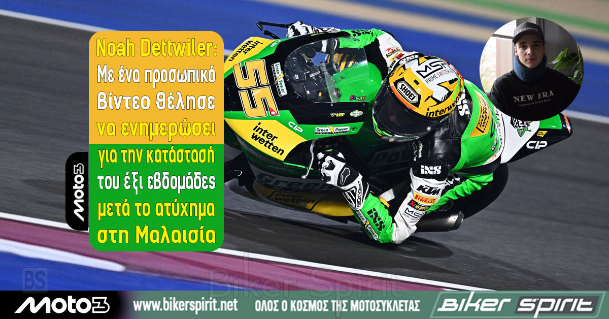 Ο Noah Dettwiler προχώρησε σε νέα ενημέρωση για την κατάσταση της υγείας του, περίπου έξι εβδομάδες μετά το σοβαρό ατύχημα που είχε στη Μαλαισία, στο πλαίσιο του MotoGP.