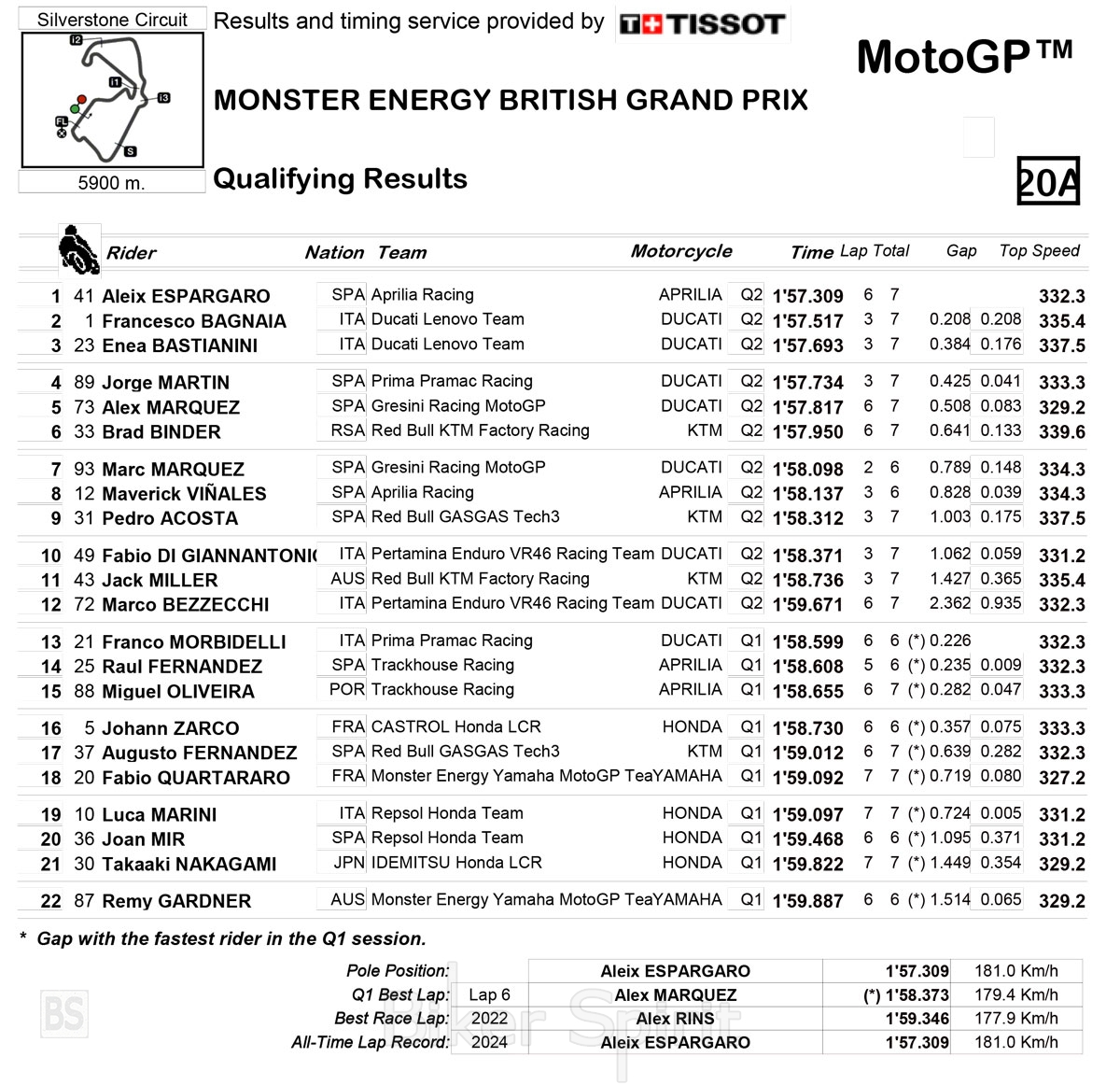 O Aleix Espargaro κέρδισε την Pole position με νέο ρεκόρ στο Silverstone – Bagnaia και Bastianini στην πρώτη γραμμή – Αποτελέσματα