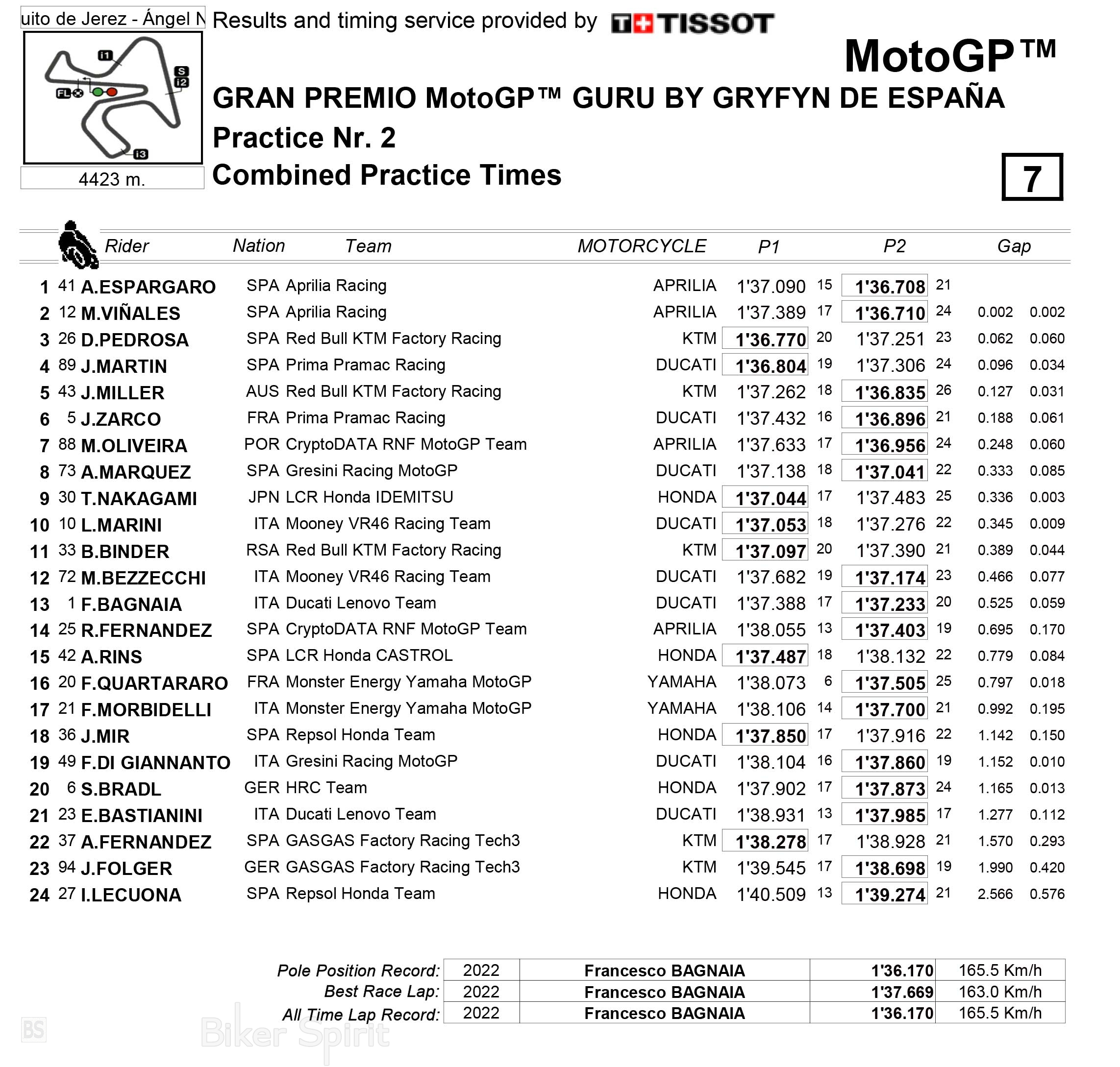 Στα τελευταία λεπτά της 2η συνεδρίας P2 πήραν φωτιά τα χρονόμετρα με τα δυο εργοστασιακά Aprilia να κάνουν το 1-2