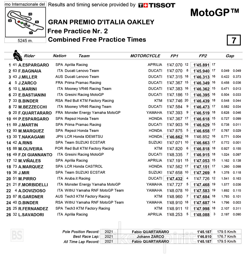 Η Aprilia στην κορυφη, 6 Ducati στην 10αδα, KTM, Yamaha και Honda στο TOP 10, ενώ οι περισσότεροι οδηγοί βελτίωσαν τον χρόνο τους στο FP2!
