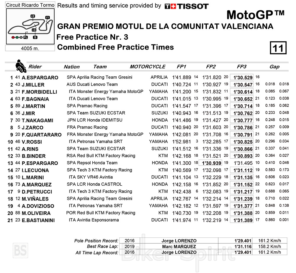 Ο Aleix Espargarò ταχύτερος του FP3 στην Valencia – Ποιοι περνούν στο Q2 – Aprilia, Ducati και Yamaha στο TOP 3 – Αποτελέσματα