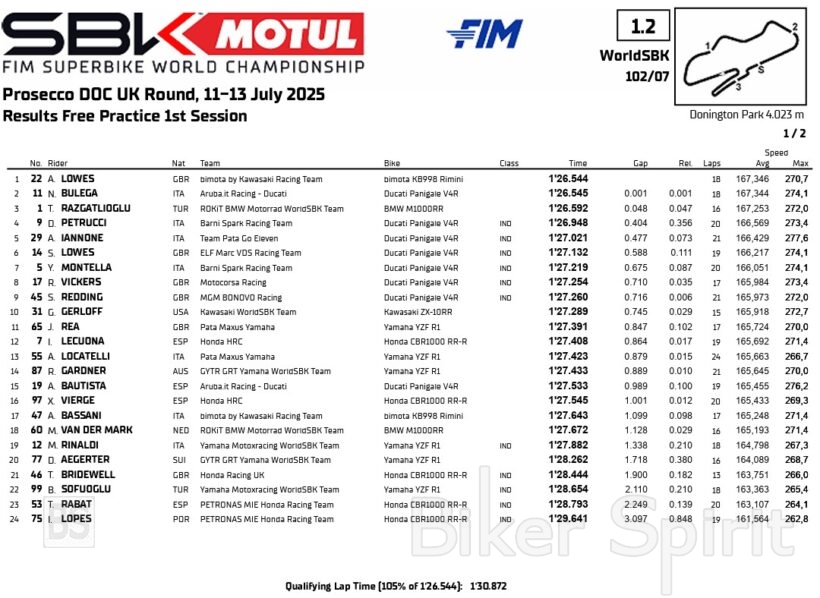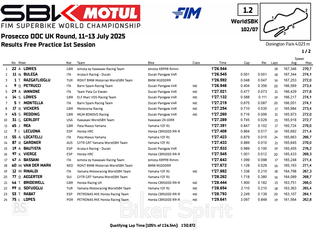 Alex Lowes, the fastest rider in #WorldSBK FP1🔥💨#UKWorldSBK 🇬🇧 pic.twitter.com/Umv82E2Cfi
