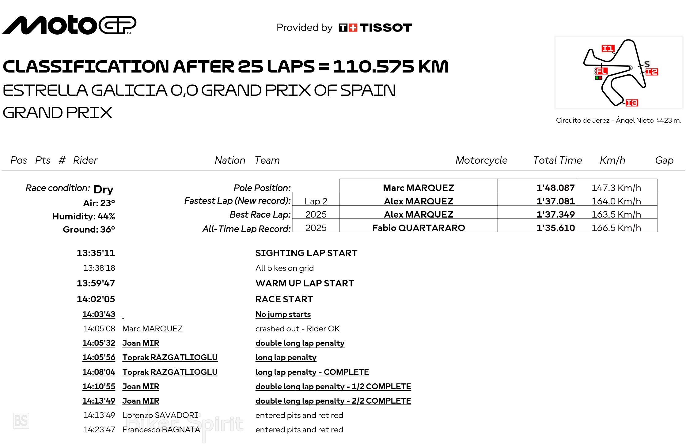 Ο Alex Marquez κέρδισε στη Jerez κόβοντας το σερί του Marco Bezzecchi – Πτώση για Marc Marquez – Marco Bezzecchi και Fabio Di Giannantonio στο βάθρο – Αποτελέσματα