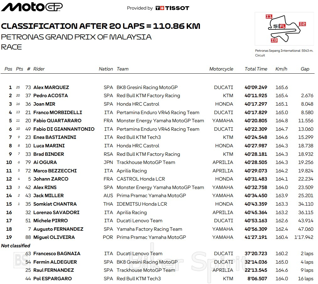 Ο Alex Marquez νίκησε τον αγώνα στη Sepang – Pedro Acosta και Joan Mir στο βάθρο – Αποτελέσματα