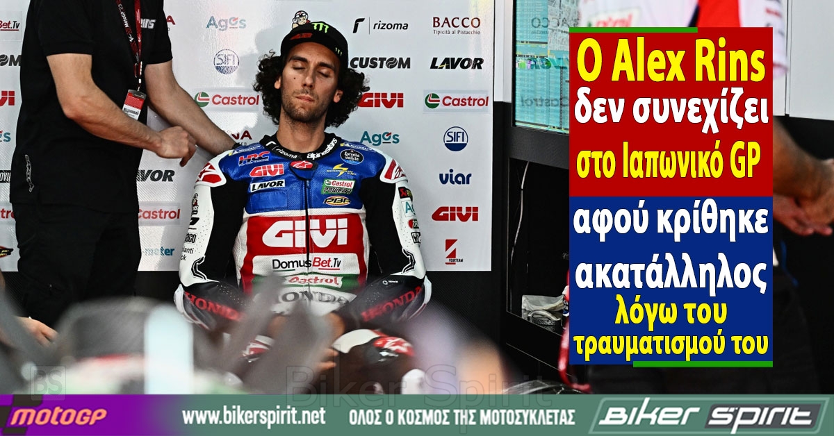 Ο Alex Rins δεν συνεχίζει στο GP της Ιαπωνίας, αφού κρίθηκε ακατάλληλος λόγω του τραυματισμού του