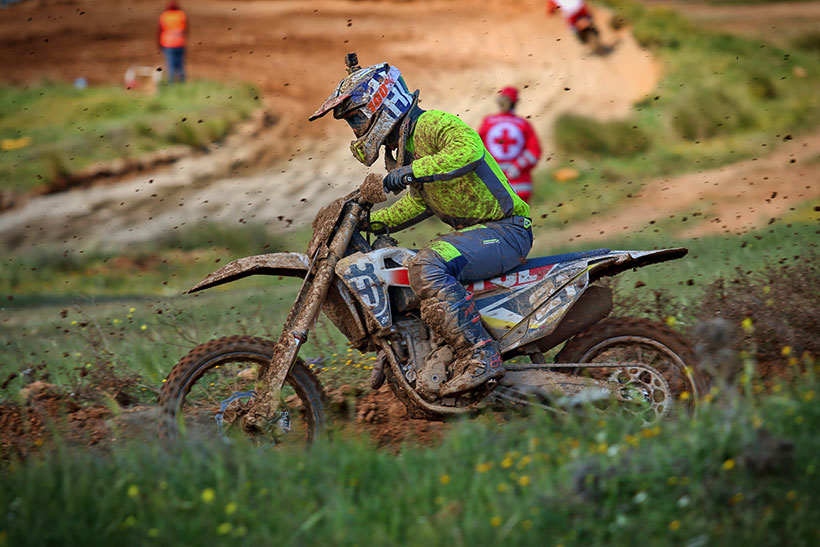 #91 Άρης Τσαρνάς – Husqvarna FC 450: “Είχα ένανz καλό αγώνα στην Χαλκίδα και φάνηκε πως προχωράμε προς την σωστή κατεύθυνση. Μετά και από τον πρόσφατο τραυματισμό μου στο χέρι, συνεχίζω να βελτιώνομαι και πλέον δεν με ενοχλεί τόσο μέσα στα σκέλη. Η πίστα στην Χαλκίδα έφερνε καταπόνηση στο σώμα και κούραση, αλλά παρόλα αυτά προσπάθησα για το καλύτερο δυνατό σε κάθε σκέλος. Στο πρώτο σκέλος είχα καλή εκκίνηση αλλά ένοιωσα κούραση στο μέσο του αγώνα. Ανέβασα ξανά ρυθμό προς το τέλος του σκέλους, και έφτασα να παλεύω για την τρίτη θέση. Στο δεύτερο σκέλος ήμουν πιο δυνατός. Με καλά σταθερούς χρόνους κατάφερα να φτάσω έως την τρίτη θέση κι έτσι τερμάτισα τέταρτος στον αγώνα.”