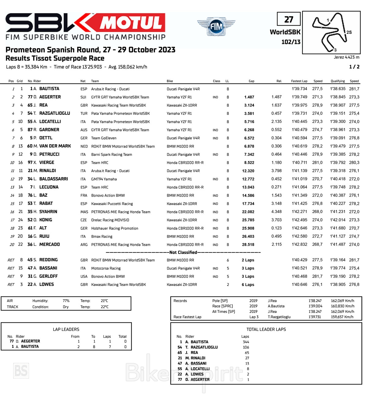 Ο Alvaro Bautista κέρδισε τον αγώνα Superpole στην Jerez – Aegerter και Rea στο βάθρο – Αποτελέσματα