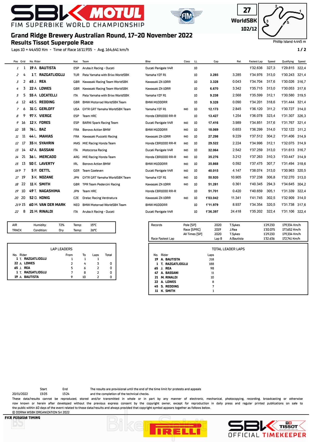 Ο Alvaro Bautista πήρε τη νίκη του Superpole Race στο Phillip Island – Αποτελέσματα