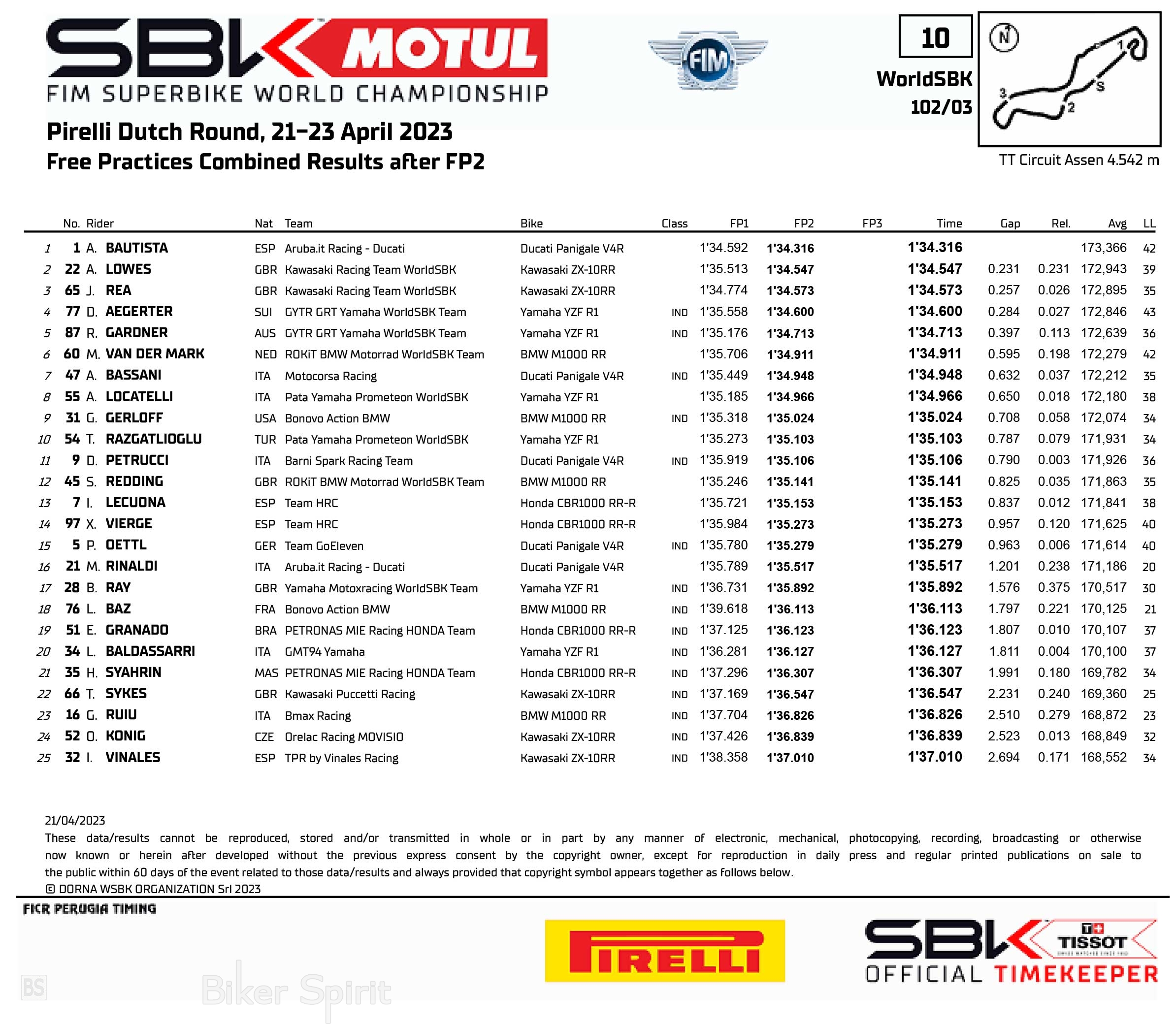Το Παγκόσμιο Πρωτάθλημα FIM Superbike 2023 συνεχίστηκε σήμερα με το FP2 για τον 3ο γύρο του Ολλανδικού Γύρου Pirelli στο TT Circuit Assen.