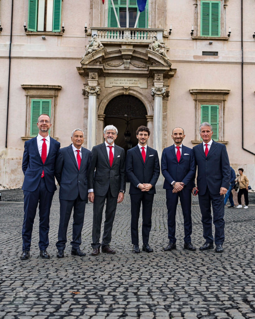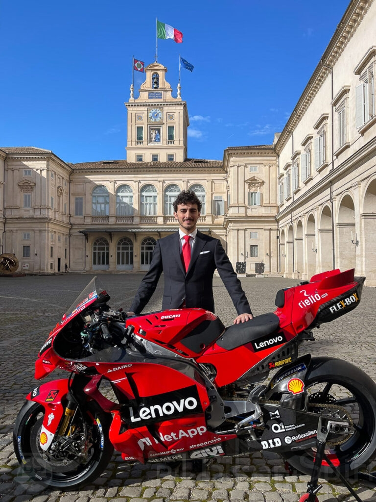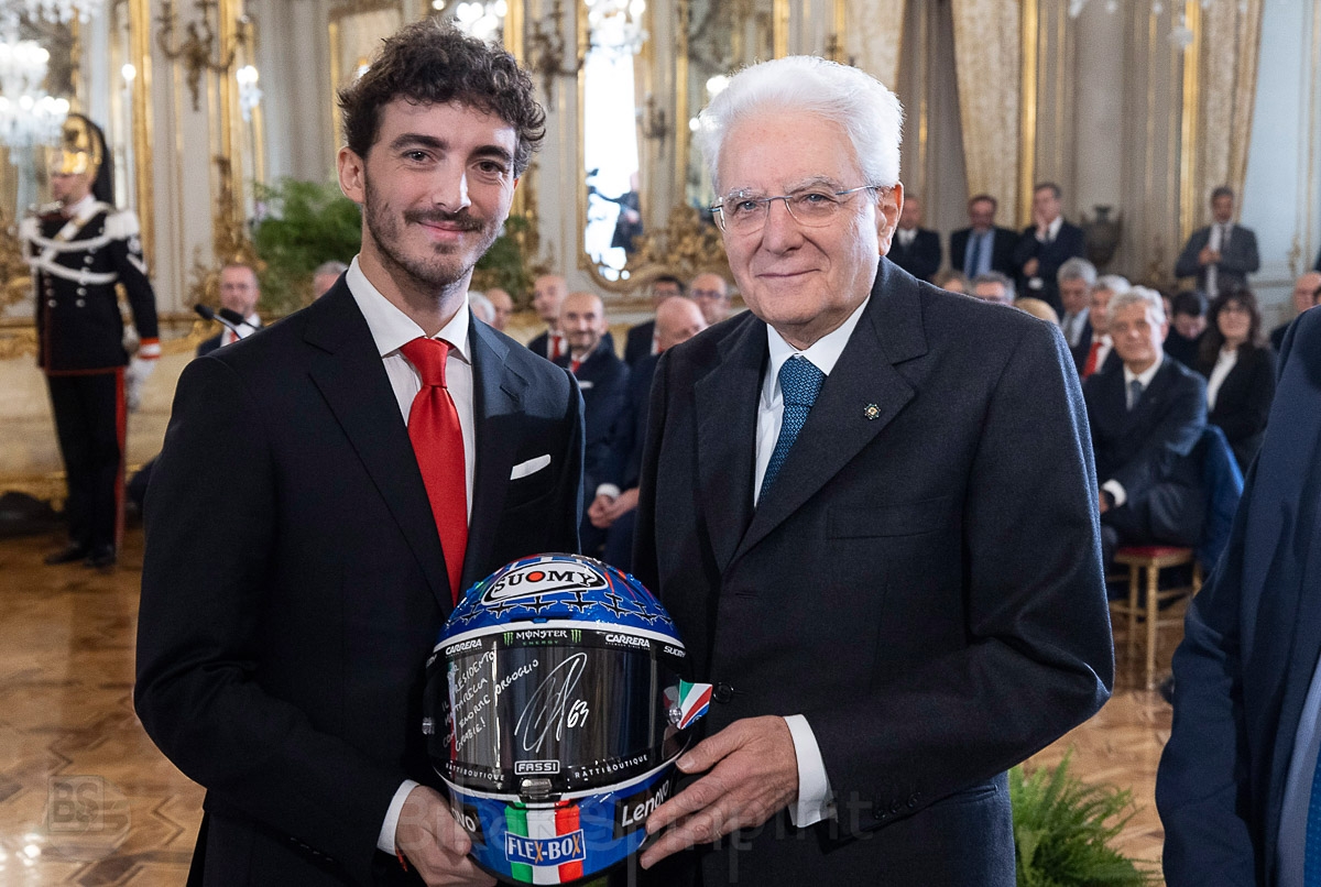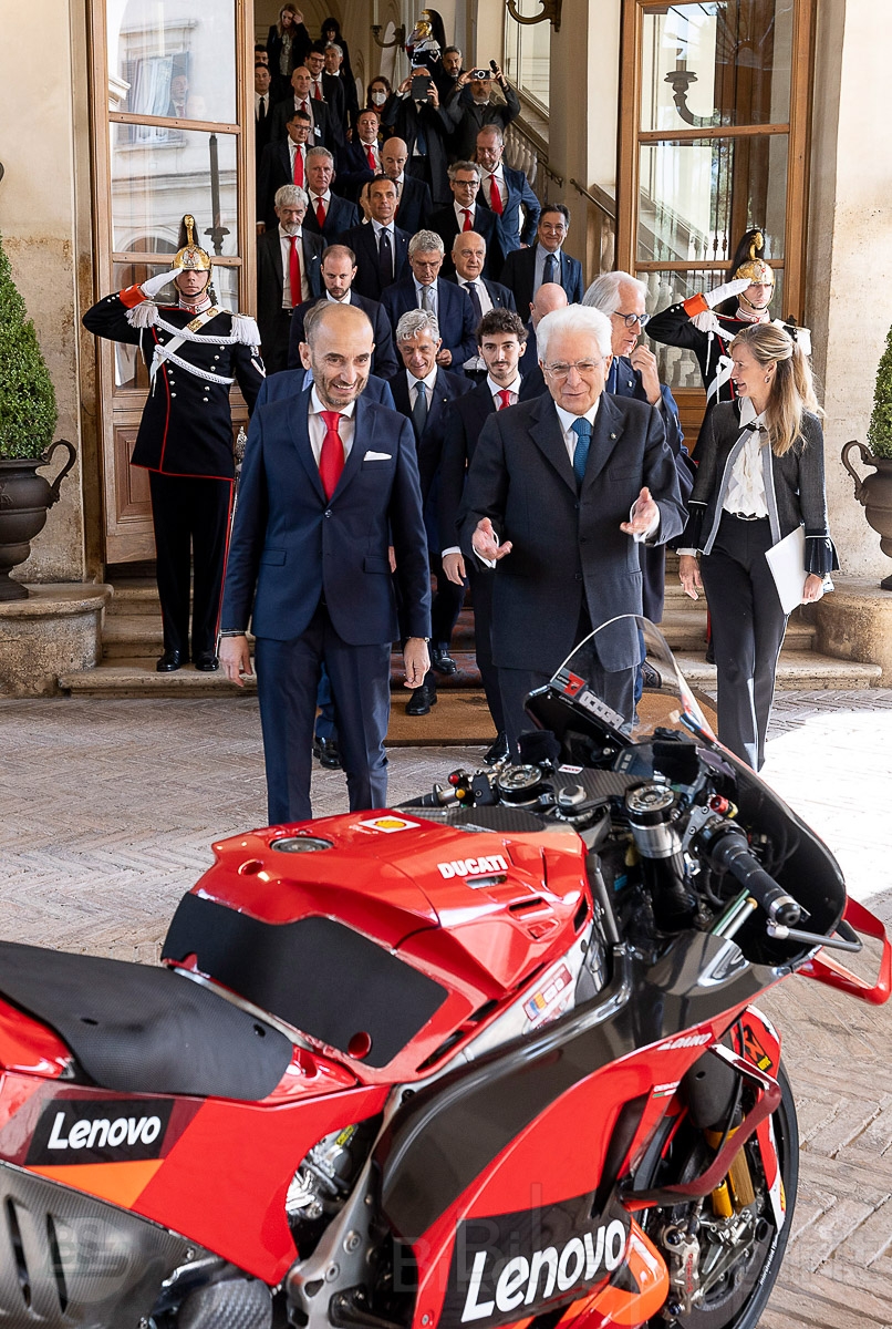 Ο Bagnaia, μαζί με τους Claudio Domenicali (Διευθύνων Σύμβουλος Ducati), Luigi Dall’Igna (Γενικός Διευθυντής Ducati Corse), Paolo Ciabatti (Αθλητικός Διευθυντής Ducati Corse), Davide Tardozzi (Ducati Lenovo Team Manager) και μια αντιπροσωπεία της Ducati, επισκέφθηκαν τον Sergio Mattarella. , Πρόεδρος της Ιταλικής Δημοκρατίας, στο Quirinale.