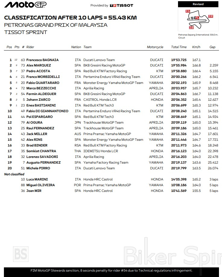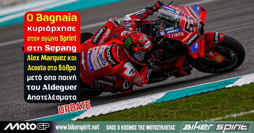Ο Bagnaia κυριάρχησε στον αγώνα Sprint στη Sepang – Alex Marquez και Acosta στο βάθρο μετά απο ποινή του Aldeguer – Αποτελέσματα – UPDATE