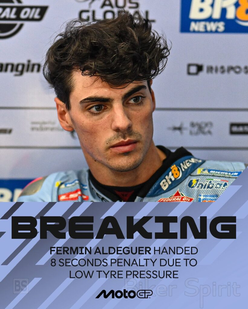 Ο Aldeguer, ωστόσο, μετά το τέλος του αγώνα ήταν υποδιερεύνηση και τελικά πήρε ποινή 8 δευτερολέπτων για παράβαση πίεσης ελαστικών, κάτι που όπως δείχνει κόστισε το βάθρο τελικά, και τερμάτισε στην 7η θέση.