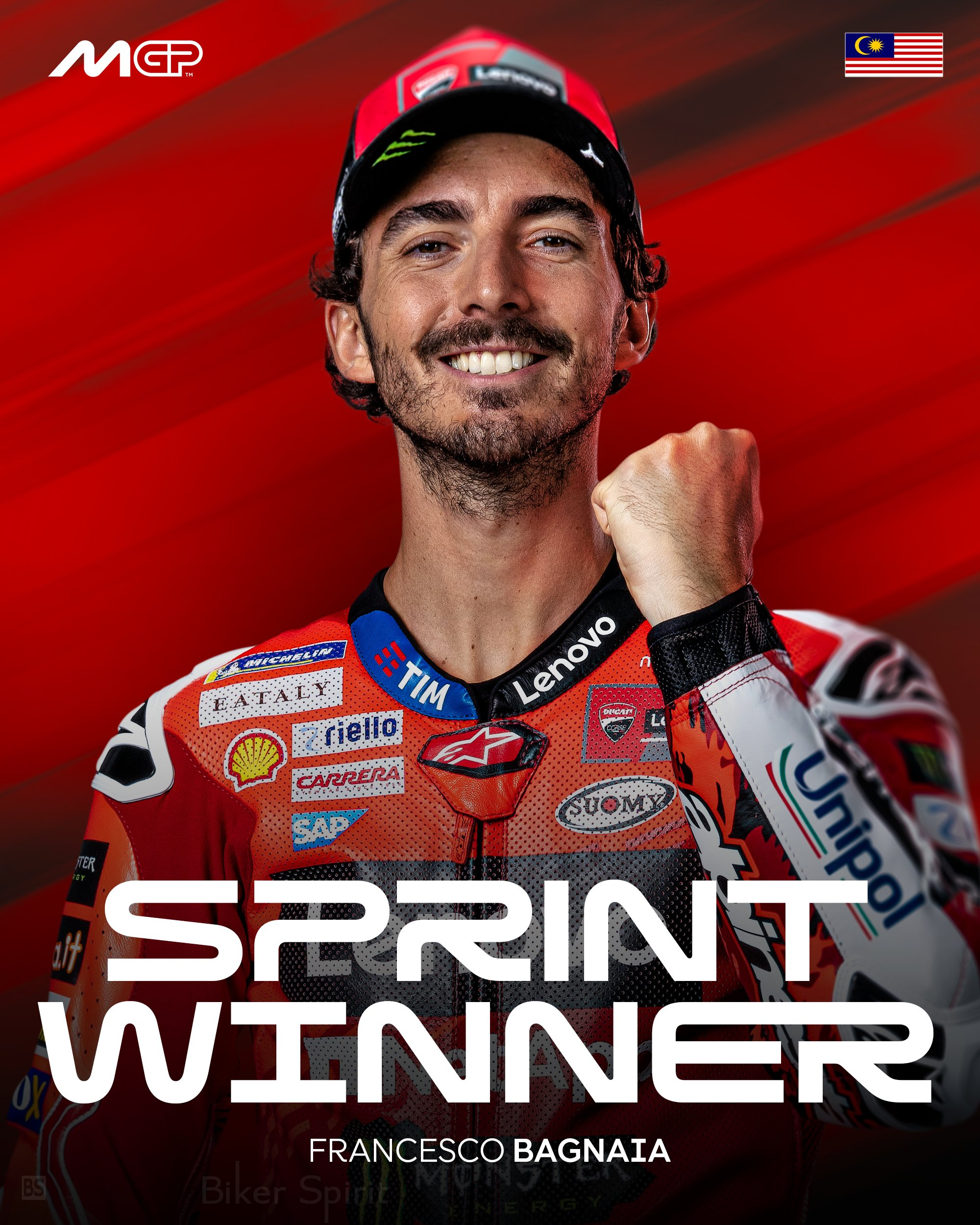 Μετά από δέκα γύρους στη ζεστή και την απαιτητική πίστα της Sepang, ο Ιταλός της Ducati Lenovo Team τερμάτισε πρώτος, αφήνοντας πίσω του τους Alex Marquez και Fermin Aldeguer, ολοκληρώνοντας με την Ducati όλες τις θέσεις του βάθρου.