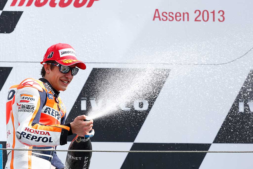 Ο Marc Marquez πήρε την πρώτη του νίκη στα 125cc TO 2010, ενώ την επόμενη χρονιά το 2011 σαν πρωτάρης στην Moto2 , κάνει την δεύτερη νίκη του στο Assen και την μια από τις 2 στην μεσαία κατηγορία. Το 2014, κάνει την επόμενη νίκη του που συμπληρώνει το δικό του Χατ-τρικ, παίρνοντας μια νίκη, από τις δυο στην μεγάλη κατηγορία και τις 5 συνολικά στην Ολλανδία.