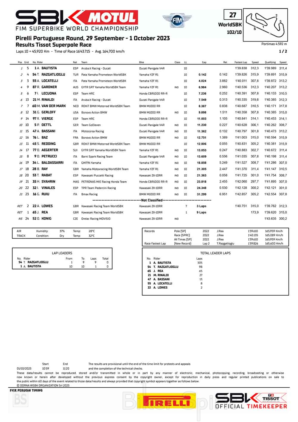 Ο Bautista κέρδισε τον αγώνα Superpole στο Portimao πάνω στην γραμμή τερματισμού – Αποτελέσματα – Razgatlioglu και Locatelli στο βάθρο – πτώση Rea – Αποτελέσματα