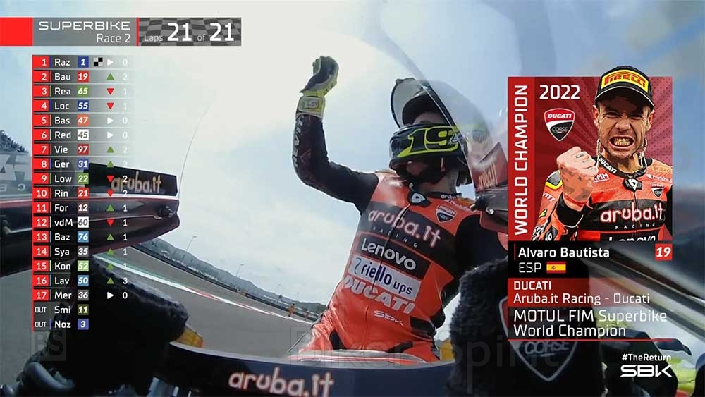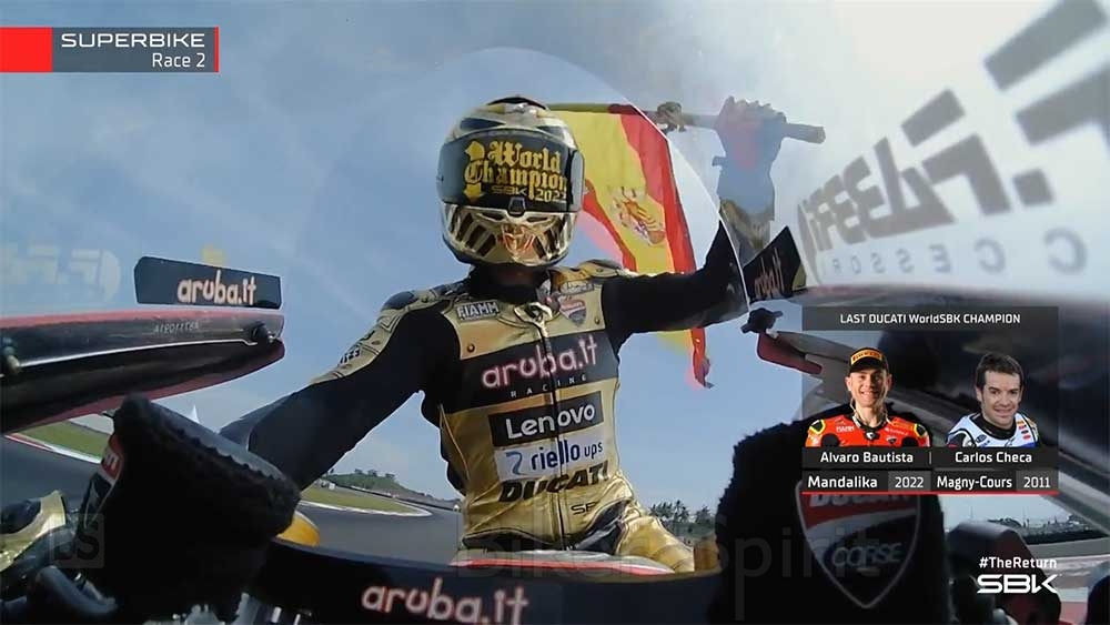 Η κατάκτηση του τίτλου από τον Bautista σήμαινε επίσης ότι έγινε η πρώτη φορά στην ιστορία που η Ducati διεκδίκησε και τα δύο πρωταθλήματα αναβατών WorldSBK και MotoGP™ την ίδια σεζόν.