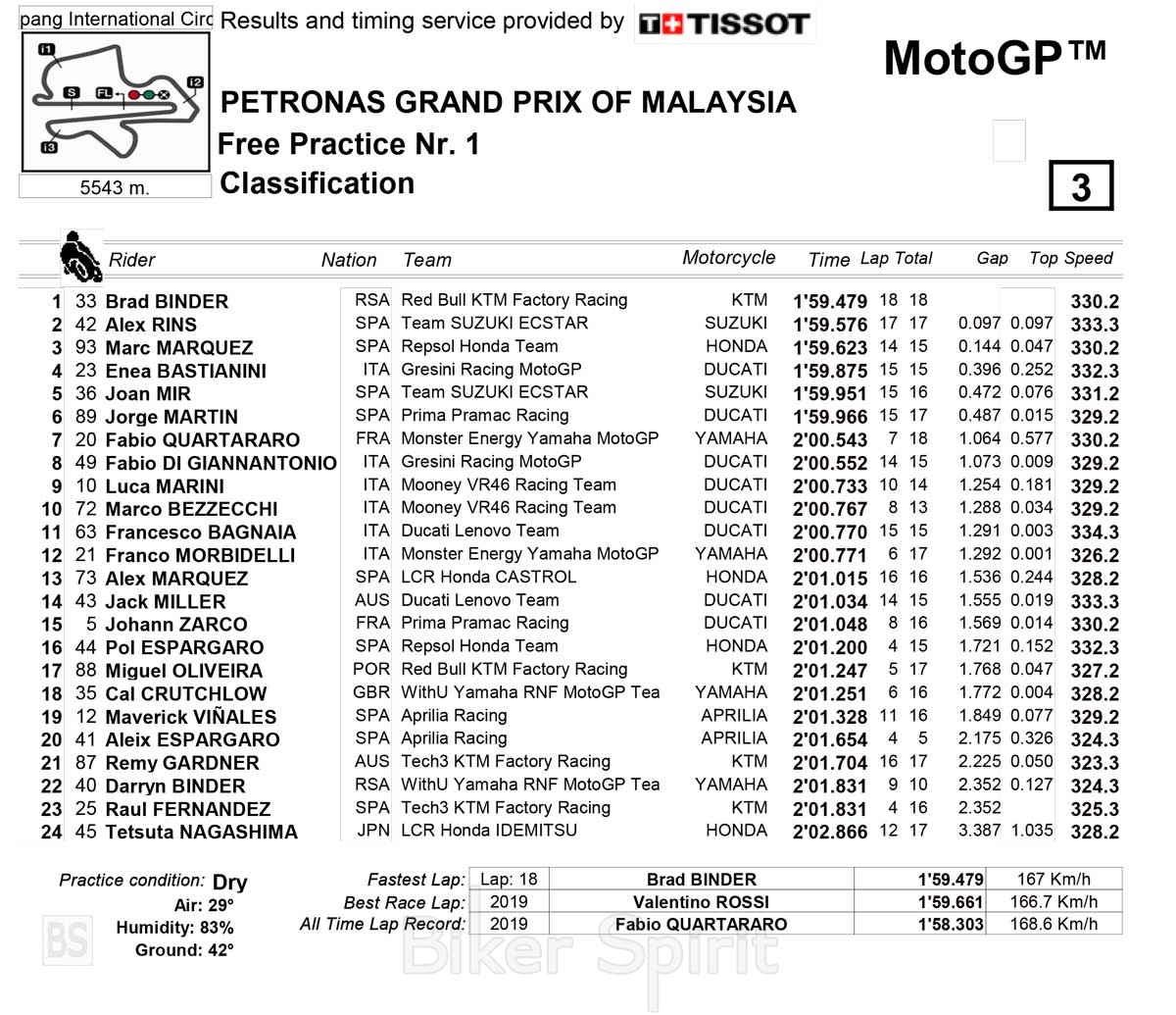 Ο Binder ταχύτερος στο FP1 ανεβάζει την KTM στην κορυφή στην Μαλαισία – Αποτελέσματα