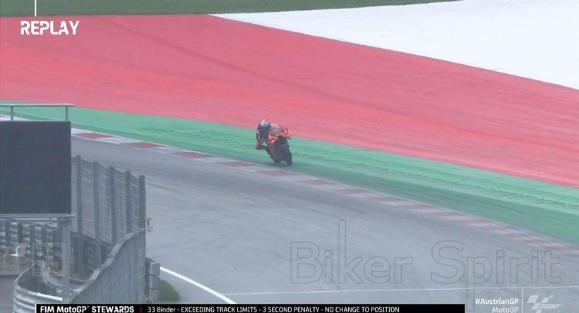 Ο 26χρονος παραλίγο να πέσει και στον τελευταίο γύρο με τη βροχή να είναι η πιο δυνατή, ο Brad Binder στον τελευταίο γύρο από τα πολλά γλιστρήματα έκανε υπέρβαση ορίων τα πίστας και τιμωρήθηκαν με 3 δευτερόλεπτα ποινή αλλά χωρίς καμία επίπτωση αφού τερμάτισε 12 δευτερόλεπτα μπροστά από τον 2ο