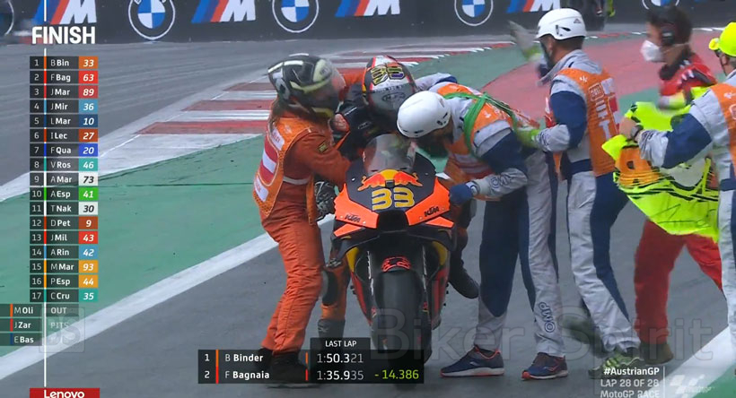 Την 2η νίκη της καριέρας του έκανε ο Brad Binder στο Grand Prix της Αυστρίας 2, σε έναν τρελό αγώνα, αφού πήρε την καρό σημαία με slick ελαστικά κάτω από μεγάλη βροχή!