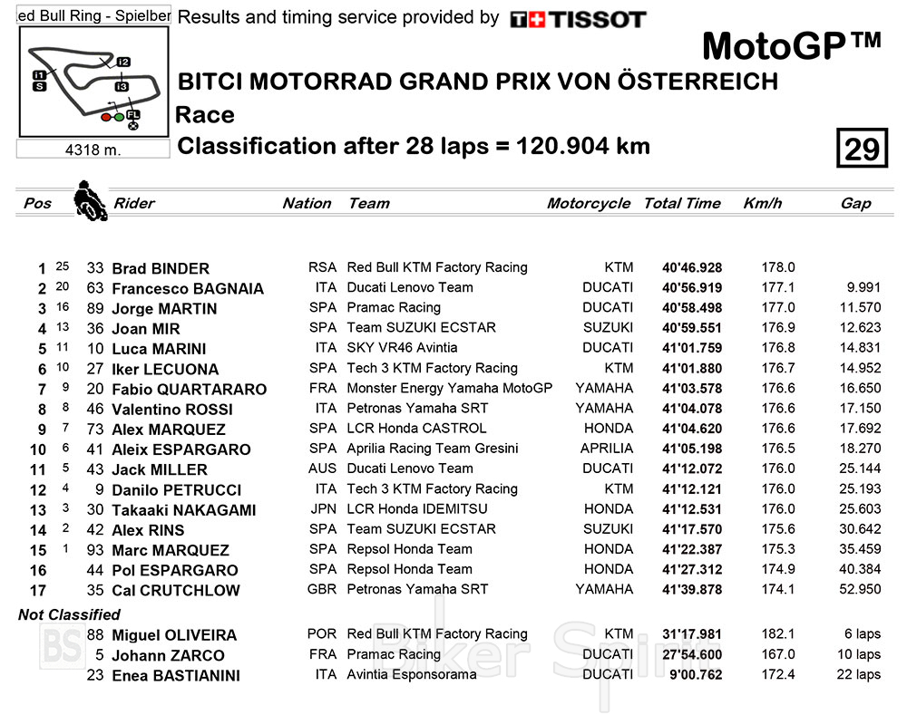 Ο Brad Binder κέρδισε τον τρελό αγώνα στην Αυστρία 2 – Αποτελέσματα – Χρόνοι