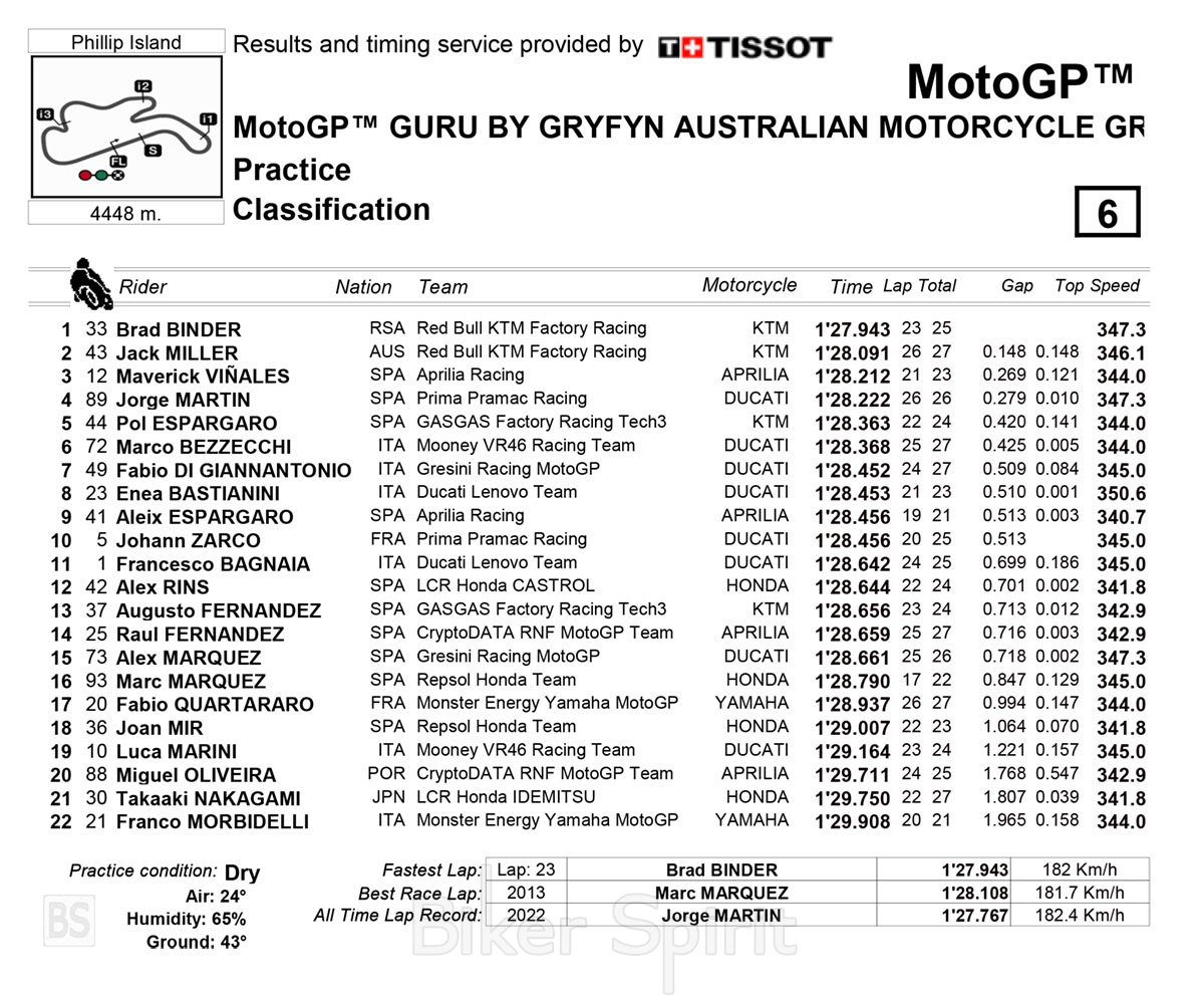 Ο Brand Binder ταχύτερος την πρώτη μέρα στο Phillip Island – ποιοι οδηγοί περνούν στο Q2 – Η ΚΤΜ το 1-2 και η Aprilia στο Top 3 – Αποτελέσματα