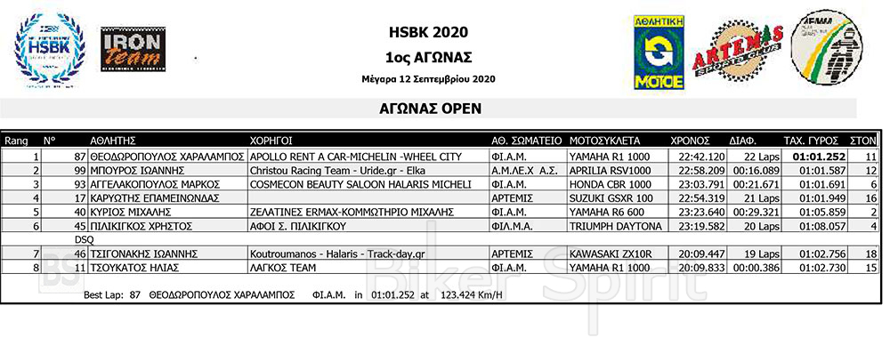Ο Χαράλαμπος Θεοδωρόπουλος, έκανε την πρώτη νίκη της χρονιάς στον 1ο αγώνα στα Μέγαρα στην κατηγορία OPEN, κάνοντας έναν καλό αγώνα παίρνοντας μια άνετη νίκη , με διαφορά που ξεπέρασε τα 11 δευτερόλεπτα από τον 2ο.
