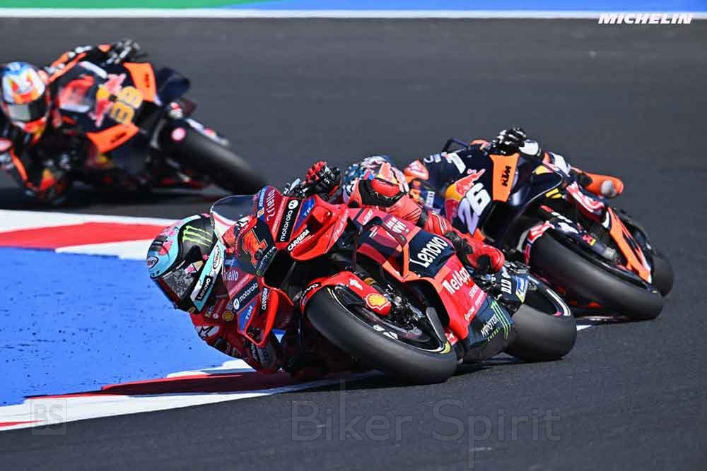 Στο Misano GP, τόσο στο σπριντ όσο και στην Κυριακή, ο Pedrosa οδηγούσε πίσω από τον Bagnaia, τον οποίο μπόρεσε να προσπεράσει σε πολλές περιπτώσεις και δεν τα κατάφερε . Από την άλλη όμως, ο Pecco Bagnaia κατάφερε να αξιοποιήσει στο έπακρο την Ducati του και στους δύο αγώνες, μεταφέροντας πολύ σημαντικές πληροφορίες. Να θυμίσουμε ότι προέρχεται από έναν τραυματισμό που σημειώθηκε στο Grand Prix της Βαρκελώνης της Καταλονίας.