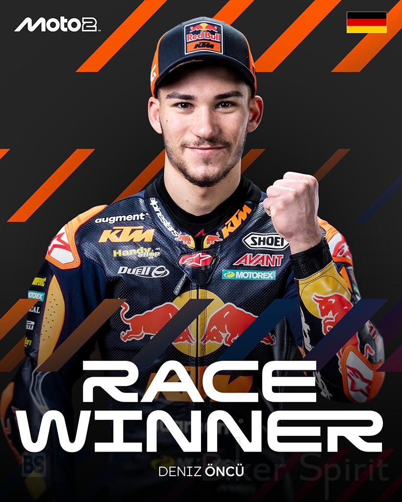Ο Deniz Oncu κατέκτησε την δεύτερη φετινή του νίκη στη Moto2, σε έναν αγώνα που διακόπηκε πρόωρα λόγω σοβαρού ατυχήματος και κόκκινης σημαίας πέντε γύρους πριν την καρό σημαία.