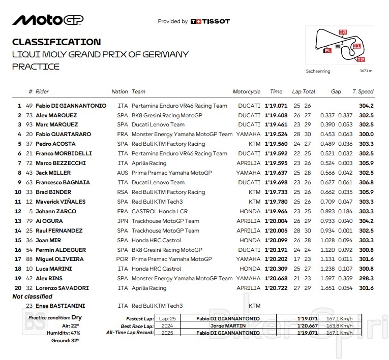Ο Di Giannantonio γρηγορότερος με ρεκόρ πίστας στο Practice στο Sachsenring – Ποιοι οδηγοί περνούν στο Q2 – Αποτελέσματα