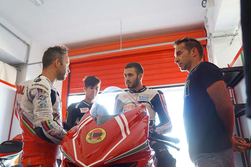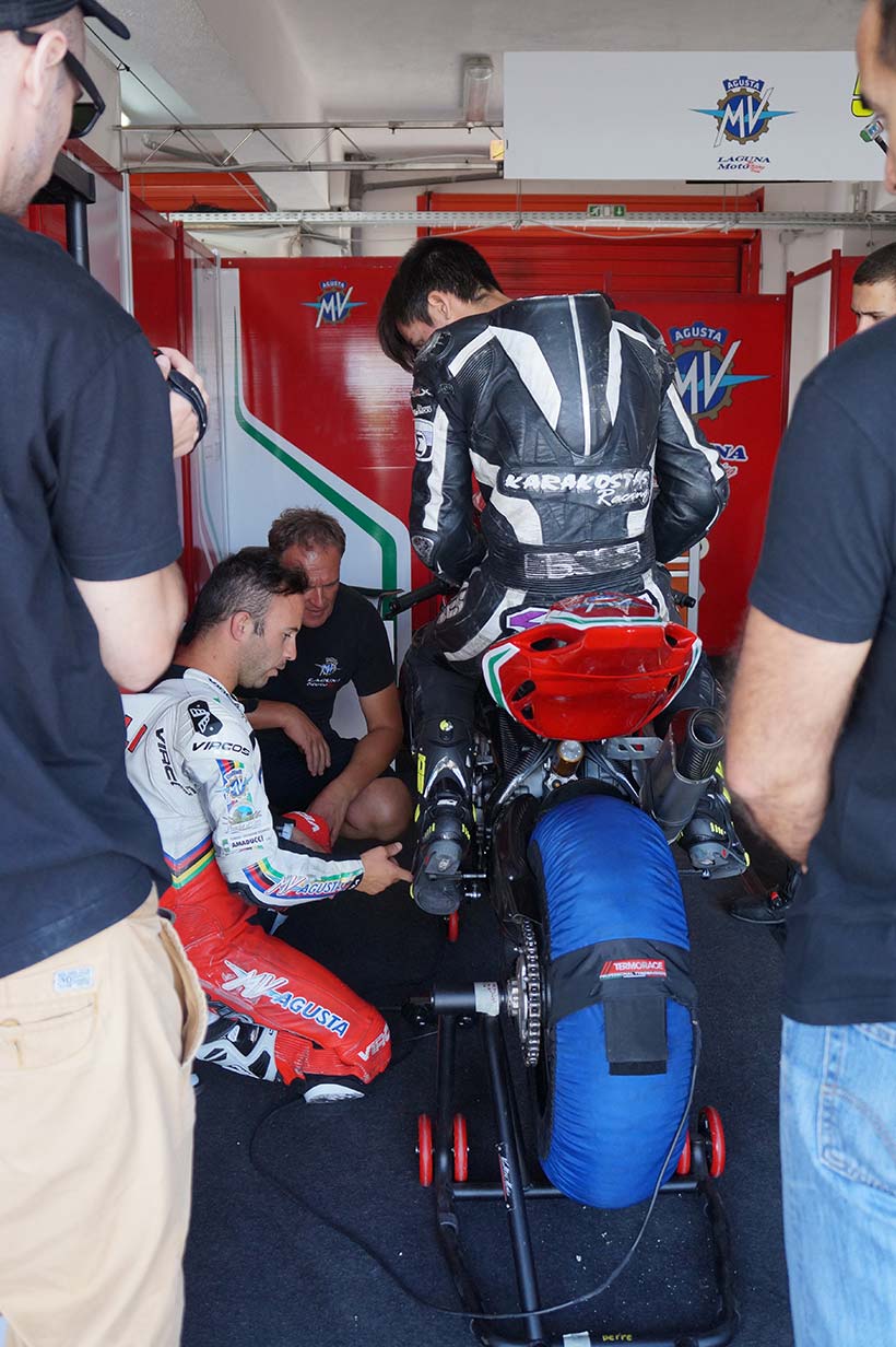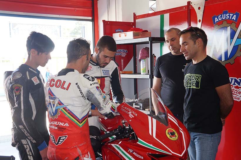 Ο Νίκος και ο Δημήτρης οδήγησαν την MV AUGUSTA F3 και κάθε φορά συζητούσαν με την ομάδα τις απορίες τους και τις εντυπώσεις τους. Οι μηχανικοί της ομάδας δοκίμασαν διάφορες ρυθμίσεις και αλλαγές ώστε να προσαρμόσουν την μοτοσυκλέτα στην οδήγηση των παιδιών.