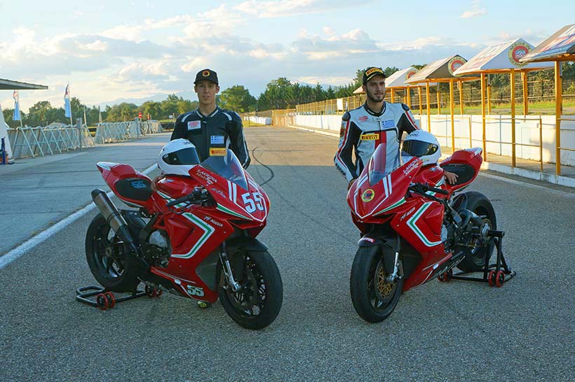 Δημήτρης : Από το Lausitzring και την Honda CBR 650F στις Σέρρες και την MV Augusta F3! Πρώτη φορά οδήγησα ευρωπαϊκή μοτοσυκλέτα αλλά προσαρμόστηκα γρήγορα στην νοοτροπία της και τη συμπεριφορά της ακολουθώντας τις συμβουλές του Massimo Roccoli. Η ανταπόκριση της ομάδας σε ότι πρόβλημα αντιμετώπιζα ήταν άμεση και έβρισκαν πάντα λύση. Οι αλλαγές που έκαναν στις ρυθμίσεις αναλόγως των σχολίων μου μετά από κάθε session βελτίωναν την απόδοση της μοτοσυκλέτας και την δική μου. Ένα τεράστιο ευχαριστώ στον κ. Παπαχριστίδη για την μοναδική ευκαιρία που μου έδωσε, στον Massimo Roccoli, στον Guiseppe Tringali, στον Andrea Gerini, και στον Gilberto Fantini που μου επέτρεψαν να γίνω για μία μέρα οδηγός εργοστασιακής ομάδας, και τον Σπύρο Κούτρα για την υποστήριξη. Και φυσικά ήταν αστείο να βλέπω τον πατέρα μου Γιώργο χωρίς εργαλεία στα χέρια και να μην ρυθμίζει την μοτοσυκλέτα! Ήταν όμως δίπλα μου σε ότι τον χρειαζόμουν.