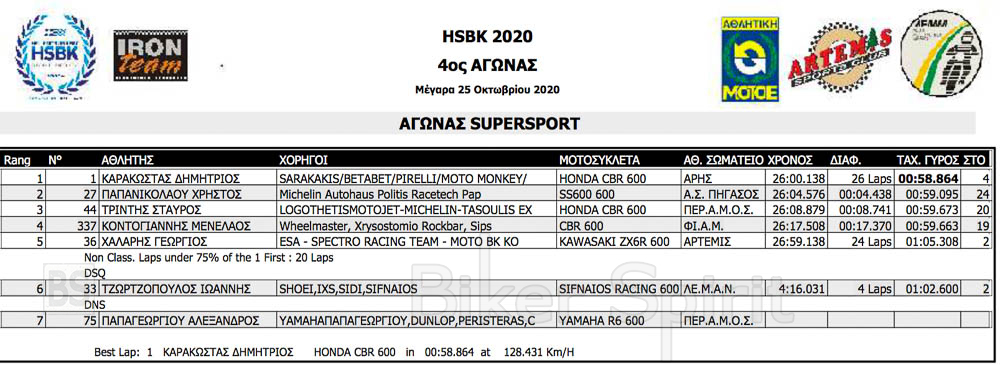 Στην 5η θέση τερμάτισε ο Γιώργος Χάλαρης (KAWASAKI ZX6R 600) ένω ο Γιάννης Τζωρτζόπουλος (HONDA CBR 600), αναγκάστηκε να εγκαταλείψει λόγω μηχανικής βλάβης.