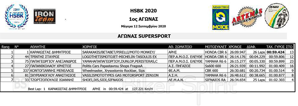 Στην κατηγορία SUPERSPORT συμμετείχαν 7 οδηγοί για τον πρώτο αγώνα της σεζόν στα Μέγαρα.