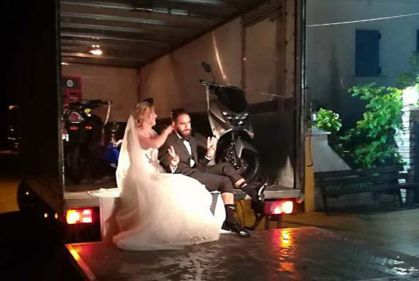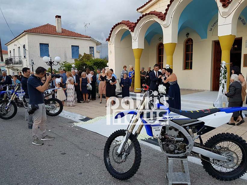 Βέβαια όπως είδαμε, ανάλογος ήταν και ο τρόπος που πήγε στην εκκλησία, εντυπωσιάζοντας αφού εμφανίστηκε με την αγωνιστική του μηχανή με το Νο_92 με την οποία συμμετέχει στο Πανελλήνιο Πρωτάθλημα. Επίσης πολλοί ήταν οι φίλοι που τον συνόδεψαν με τις μηχανές τους ως την εκκλησία, με αυτό τον ιδιαίτερο τρόπο, προκαλώντας τα βλέμματα και τις εντυπώσεις όσων τους είδαν.