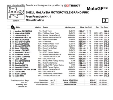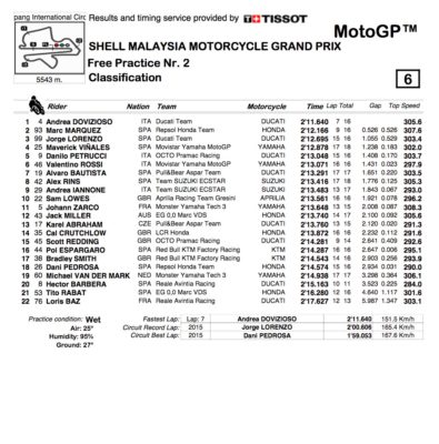 Ο Andrea Dovizioso ήταν ο ταχύτερος στην Μαλαισία κατά την διάρκεια του FP1 στο στεγνό αλλά και αργότερα κατάφερε και πάλι να κυριαρχήσει στο FP2 στο βρόχινο.