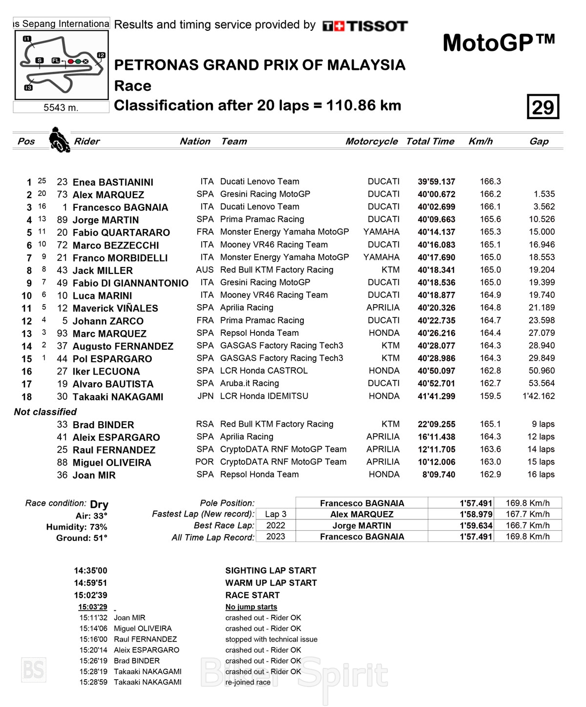 Ο Enea Bastianini κυριάρχησε κυριολεκτικά στην κατηγορία MotoGP στο Grand Prix της Μαλαισίας, για τον 18ο γύρο του MotoGP 2023 στη διεθνή πίστα Sepang.