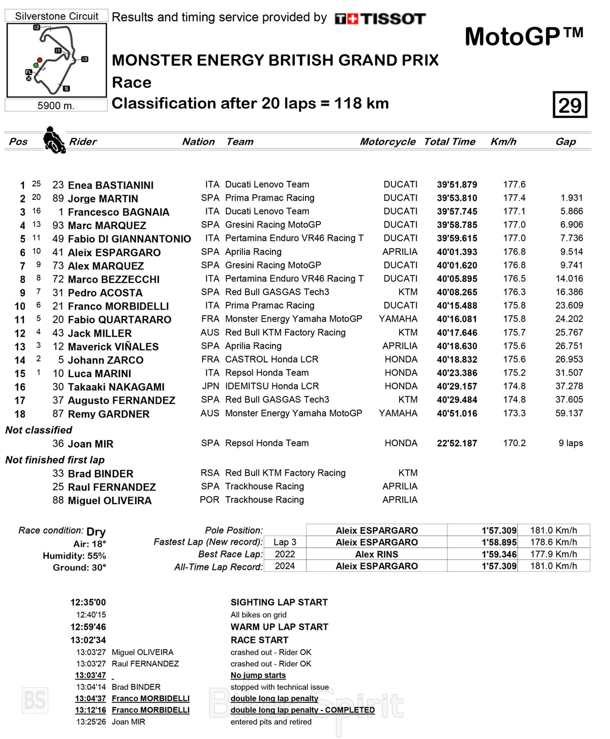 Τελικά στο δυο γύρους πριν το τέλος ο Bastianini πέρασε τον Martin και μπήκε μπροστά, κερδίζοντας τον αγώνα στο Silverstone, μετα την νίκη του και στο Sprint.