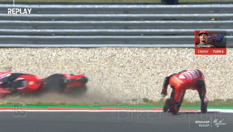 Πτώση είχε και ο Jack Miller, αλλά συνέχισε και επανήλθε στη δέκατη όγδοη θέση, αλλά στη συνέχεια αναγκάστηκε να βγει από την πίστα, όταν του έβγαλαν μαύρη με πορτοκαλί δίσκο σημαία που σημαίνει ότι είχε κάποιο πρόβλημα , κάτι που ήταν λάθος αφού η διεύθυνση αγώνα πίστευε ότι δεν υπήρχε διαρροή λαδιού από την μοτοσυκλέτα του.