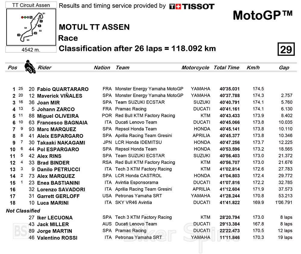 Ο Fabio Quartararo κέρδισε άνετα τον αγώνα στο Assen – Αποτελέσματα – Η Yamaha το 1-2 – η Suzuki έκλεισε το βάθρο