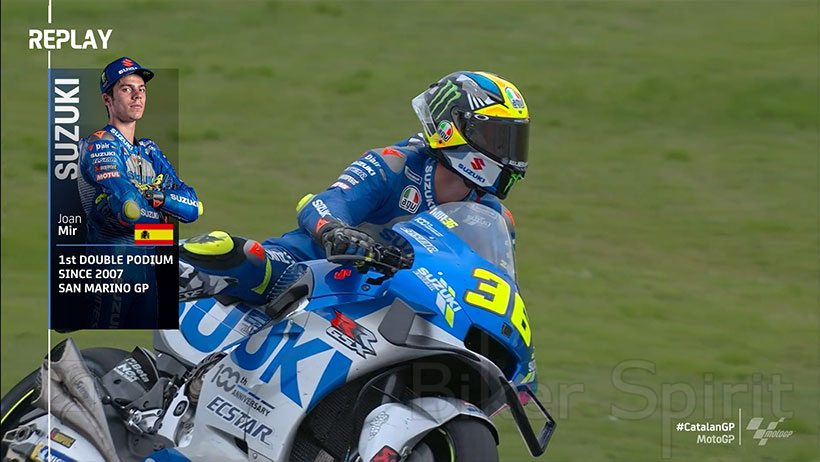 Το βάθρο έκλεισε ο άλλος οδηγός της Suzuki, Alex Rins κερδίζοντας το πρώτο του βάθρο φέτος, και κάνοντας το 2-3 για την Suzuki πρώτη φορά από τo 2007 στο Misano με τους Χοπκινς και Βερμιουλεν!