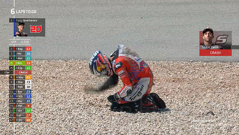Πτώσεις είχαν και οι Jack Miller στον 5ο γυρο και ο Valentino Rossi στον 14ο γυρο, ευτυχώς χωρίς τραυματισμούς!