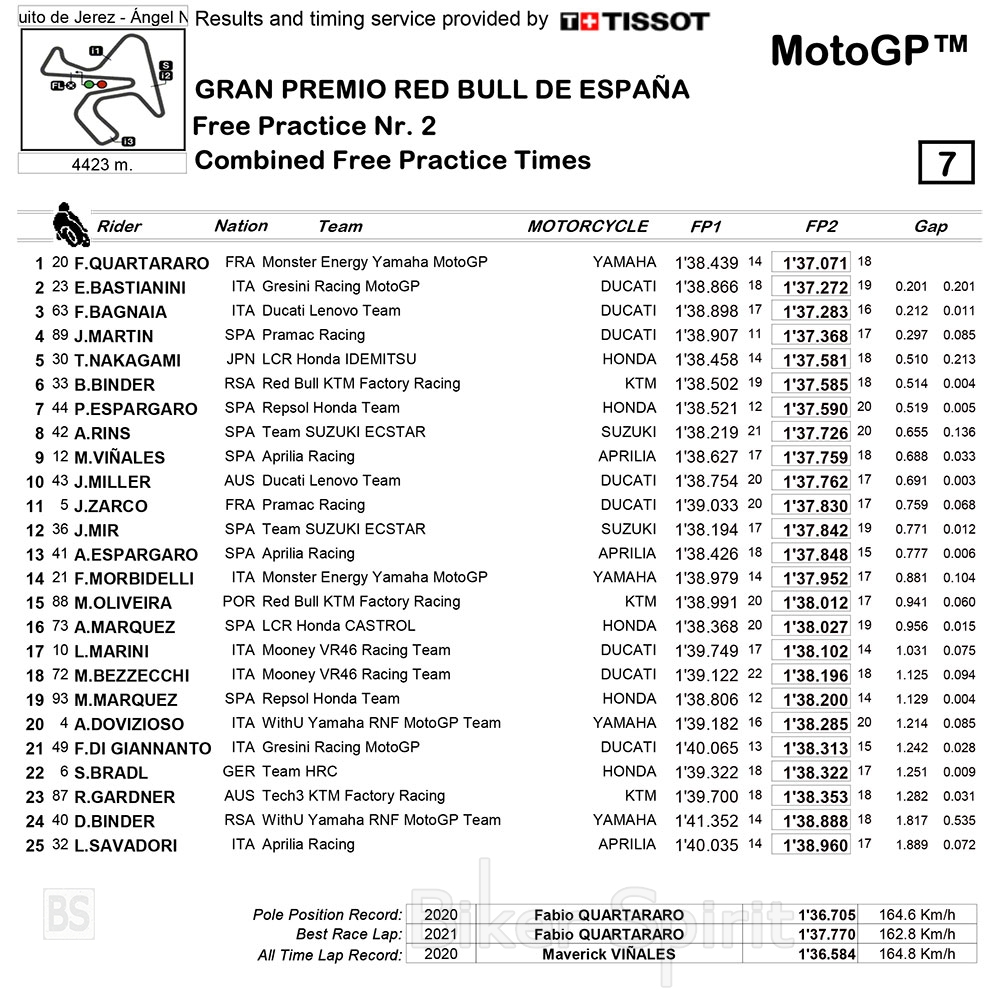 Ο Παγκόσμιος πρωταθλητής 2021 της Yamaha πέτυχε τον καλύτερο χρόνο με 1: 37.071, μπροστά από τις Ducati των Enea Bastianini (Team Gresini) και Pecco Bagnaia (Team Factory). Ο Jorge Martin τα πήγε επίσης καλά, τέταρτος με τον Desmosedici της Team Pramac , φέρνοντας έτσι 3 Ducati μέσα στην πρώτη 4αδα!